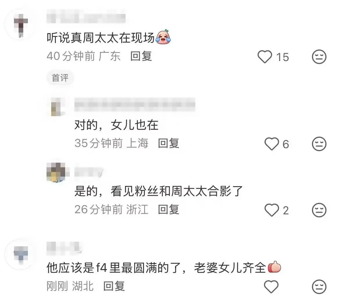 3月12日,F4在深圳举办演唱会。朱孝天还是没有出现,阿信又一次顶了上去。更让人惊喜的是,周渝民的妻女也坐在观众席看演唱会。
