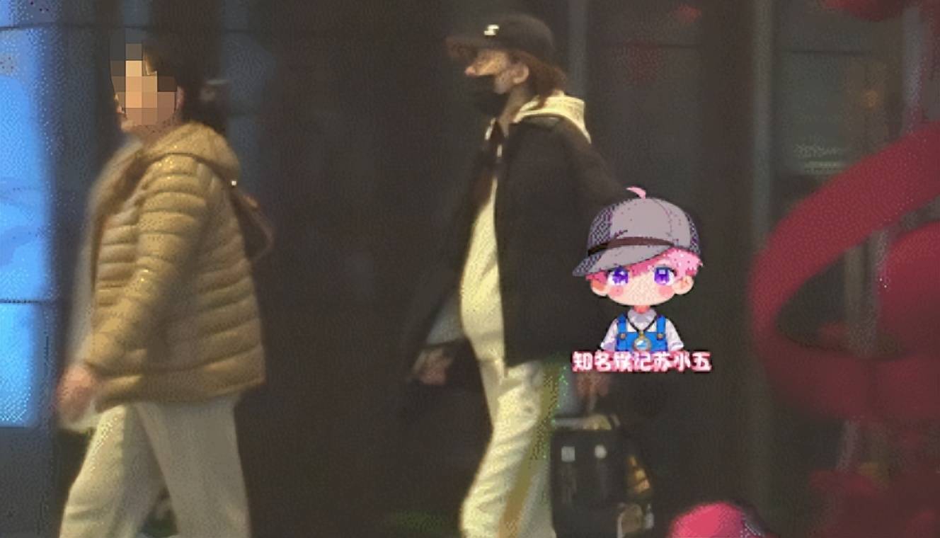 高磊鑫挺着孕肚和疑似助理一起现身,黑帽黑衣,戴了口罩也能看出眼睛没涂什么眼妆,假睫毛和眼妆都没有,近乎于素颜。