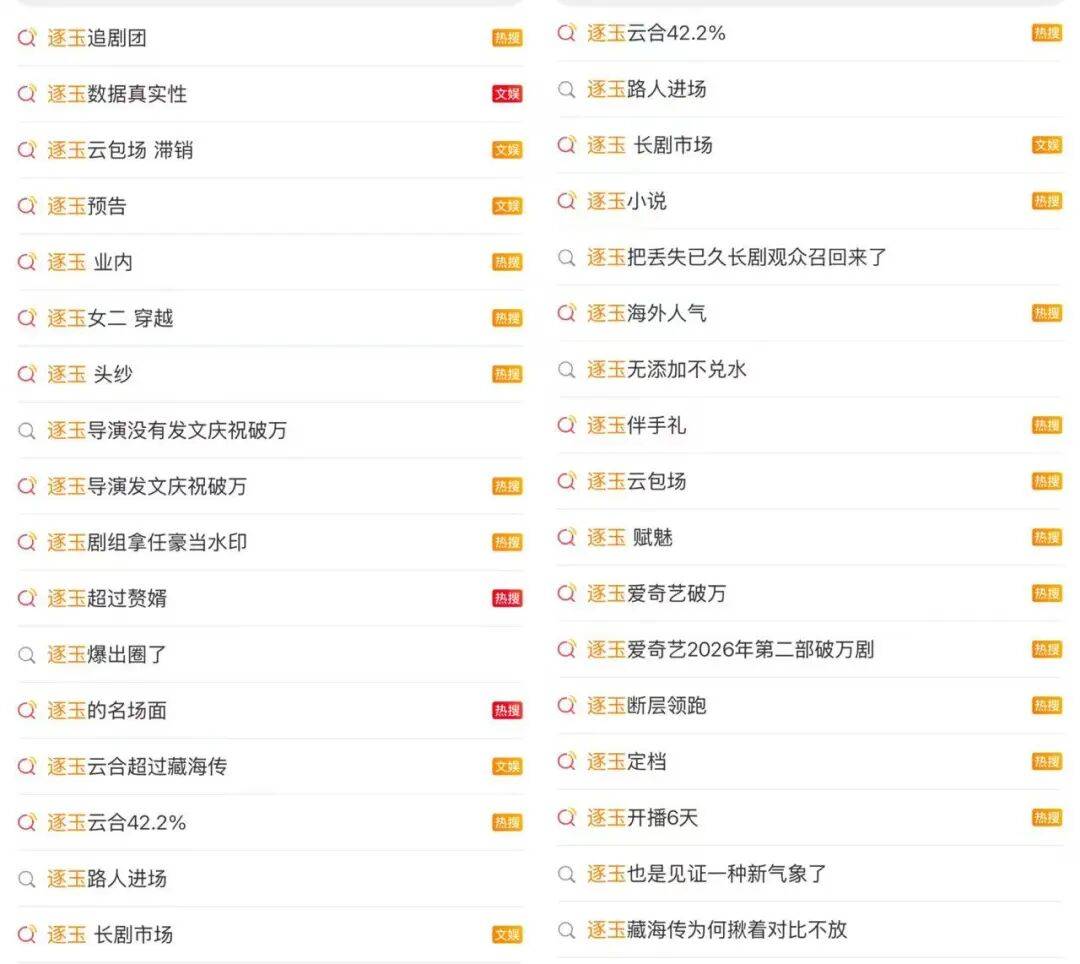 虽然才播出不到一周,两大视频平台双双押宝的《逐玉》已经火急火燎打出了热度爆表的名号。#逐玉播放量超过狂飙##逐玉市占率31.4%#逐玉创下双平台联播剧热度增速纪录#的词条,轮番在大家面前刷存在感。