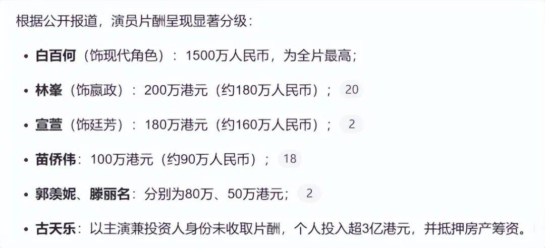 对比起内娱的“天价”,港星们的片酬显然普遍比较低一些。