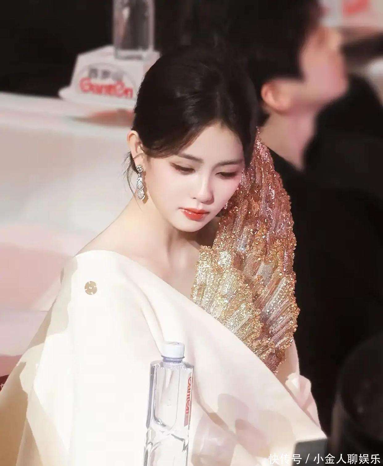 3月9日的电视剧品质盛典,本以为是一场星光璀璨的晚会,结果却成了『白鹿』的大型翻车现场。她刚落座内场,全网便炸开了锅。最先被吐槽的,是她披着的那件米白色披肩——本应衬托礼服的优雅,却意外把整套造型拉入了社死境地。肩颈处那片鎏金装饰,被网友们戏称像一把金色扇子,漂浮在那里,仿佛是家里落下的舞台道具,与整体造型极度违和。弹幕瞬间刷屏:这设计也太雷了吧,脚趾都抠出了宇宙。还有人调侃:『白鹿』怕不是把家里的扇子披身上了?金光闪闪的装饰本应精致,却瞬间把她的仙气拉成了土味艺术。随后,『白鹿』起身与嘉宾热聊,披肩滑落一角,那扇子也彻底暴露在大众视线里,网友们直接笑喷:妹妹你这礼服穿得比综艺效果还搞笑啊!