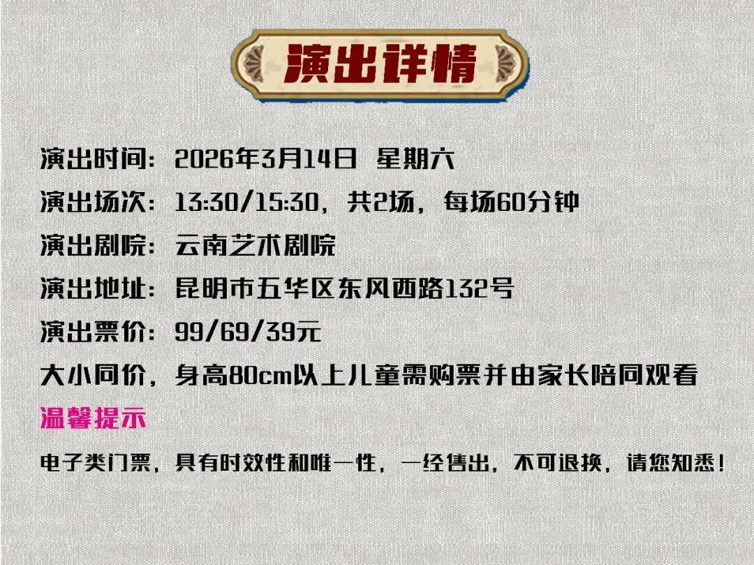 本次演出大小同价,身高80cm以上儿童均需购票并由家长陪同观看