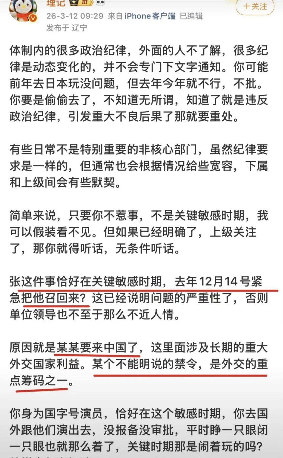 『张艺兴』被封杀最重要的原因是违反了体制内的纪律。