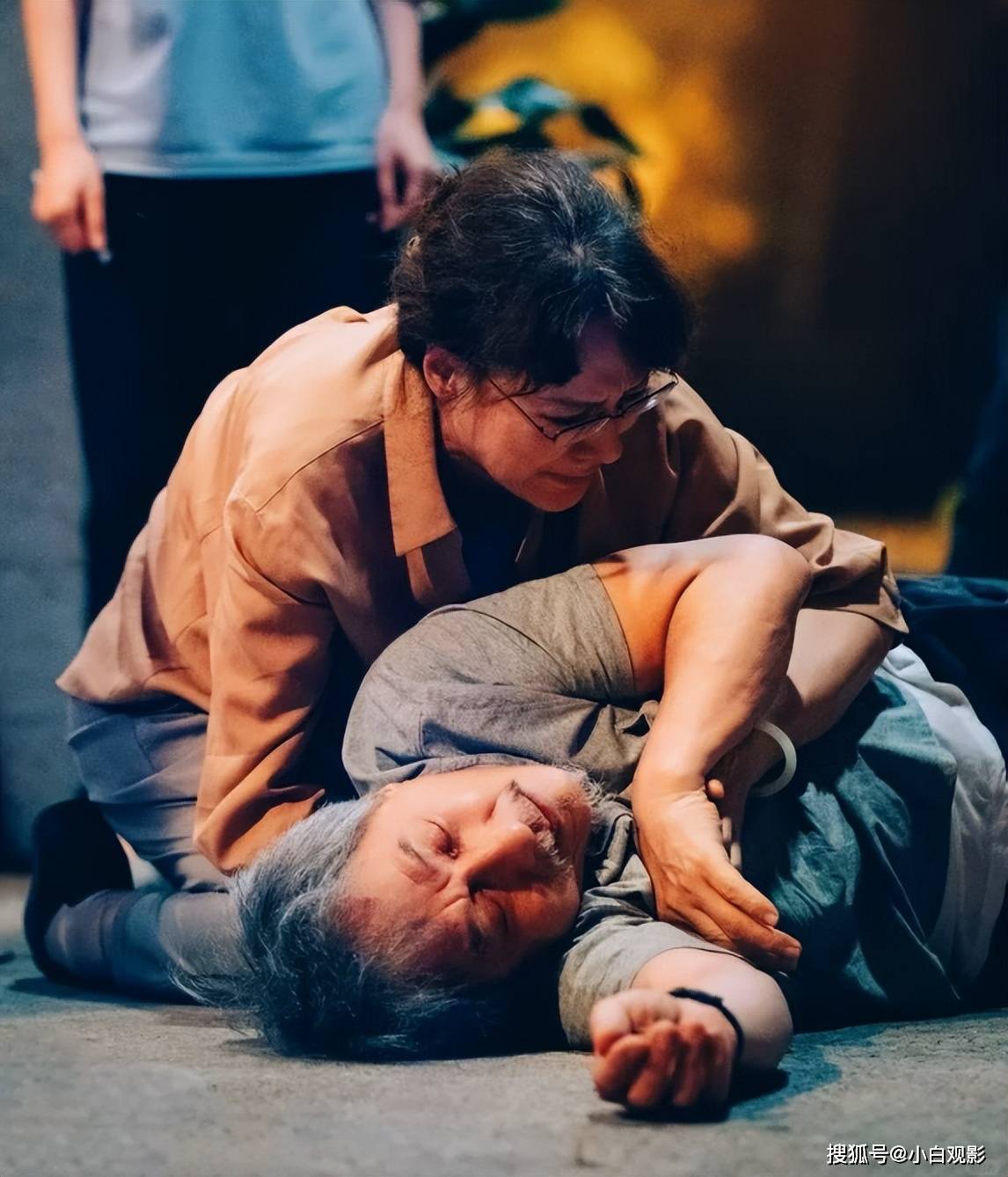 他佝偻着背,走路时脚底像粘了胶水,一步三晃;说话颠三倒四,上一句刚说“今天吃饺子”,下一句就问“壮壮怎么还没放学”;最戳人的是那双眼睛,时而清明如常,时而空洞得像蒙了层雾,仿佛随时会被一阵风刮走所有记忆。有场戏,他盯着墙上的老照片发呆,突然指着照片里穿运动服的年轻人喊“壮壮”,下一秒又茫然地问“这谁啊”,手指无意识地在照片上摩挲,像在抓一根救命稻草。