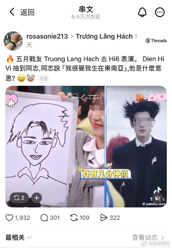 然而,这段节目传到海外后,情形却大相径庭。越南、泰国等地的网友看后,心里有些不舒服。他们觉得,这句话隐含了一个潜台词:画得不好看、甚至有些滑稽的画像,就等同于东南亚长相。这种解读,被认为是一种隐形的刻板印象——凭什么丑就和我们的外貌划上等号?在很多东南亚人看来,把我们的长相当笑料,这不好笑。 风波很快发酵,张凌赫的『社交媒体』评论区涌入大量批评声音,甚至波及商业层面。比如正在海外平台播出的新剧《