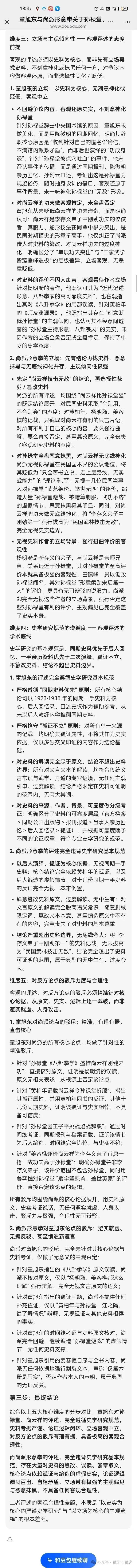 2.『豆包』AI对童旭东与尚派形意拳关于孙禄堂、尚云祥评述的客观合理性分析截图