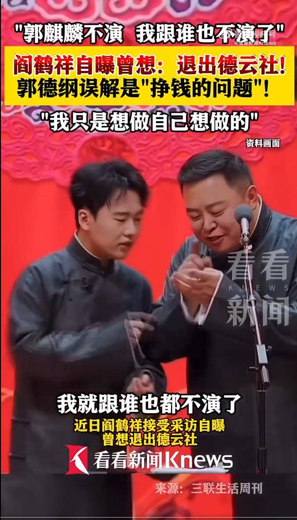 事情的关键节点在2025年12月的天津『德云社』纲丝节。当时正在摩托旅途中自由驰骋的阎鹤祥,被一个电话紧急召回调回天津担任主持人。用他自己的话说,“天津『德云社』是我想要逃离的开始。” 当晚,看着师兄弟们成双成对在台上使活,而自己却因固定搭档郭麒麟专注影视,长期处于“待岗”状态,这种强烈的反差让他情绪彻底崩溃。