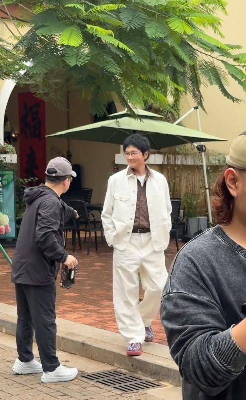 从远处看,他依旧保持着修长的身形,肩线分明,步伐稳健,即使穿着常见的衣服,也难掩他身上多年舞台磨砺出来的气质。但近看时,面容已明显消瘦,皮肤略显暗沉,颧骨高耸,法令纹和额间的皱纹交错而成,笑起来时眼角的褶皱层层叠叠,展现出一种直白而真诚的自然美。那天,他双手插兜,步伐悠闲地走着,偶尔低头与身旁的人交谈,整个人神态放松、毫无防备。