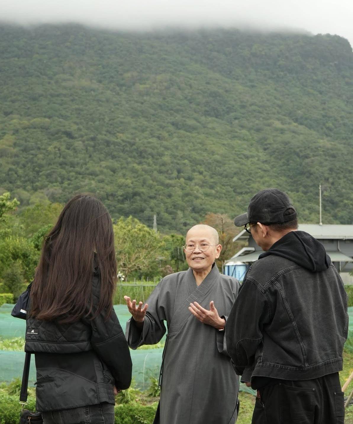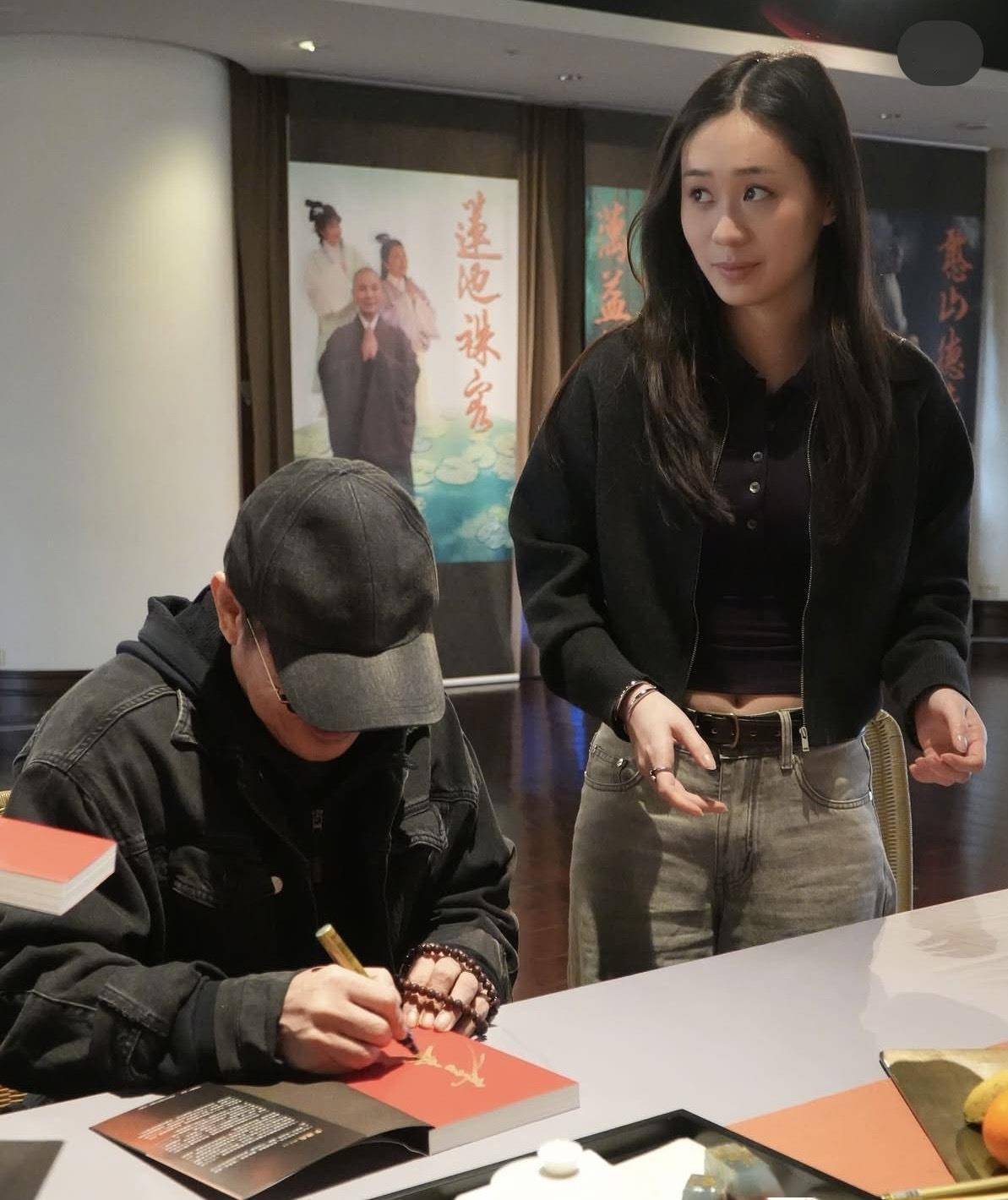 父女二人在法鼓山参访了大殿、祈愿观音殿、禅堂、开山纪念馆、法华钟楼等地。 从被曝光的照片看,他们似乎还在佛寺小住了几日,因为照片中出现了不同的着装。 『李连杰』一身黑色外套🧥,戴着黑帽和墨镜🕶️,围了一条暗红色围巾🧣,手上戴着一串佛珠,『打扮』得非常朴实。 Jada则显得轻松自在,用手机记录着庙宇的细节。 在户外,父女俩与果晖法师交谈,认真聆听法师弘法。 『李连杰』也分享了自己的修行心得,并为在场的教徒在自己带来的书籍上签名。