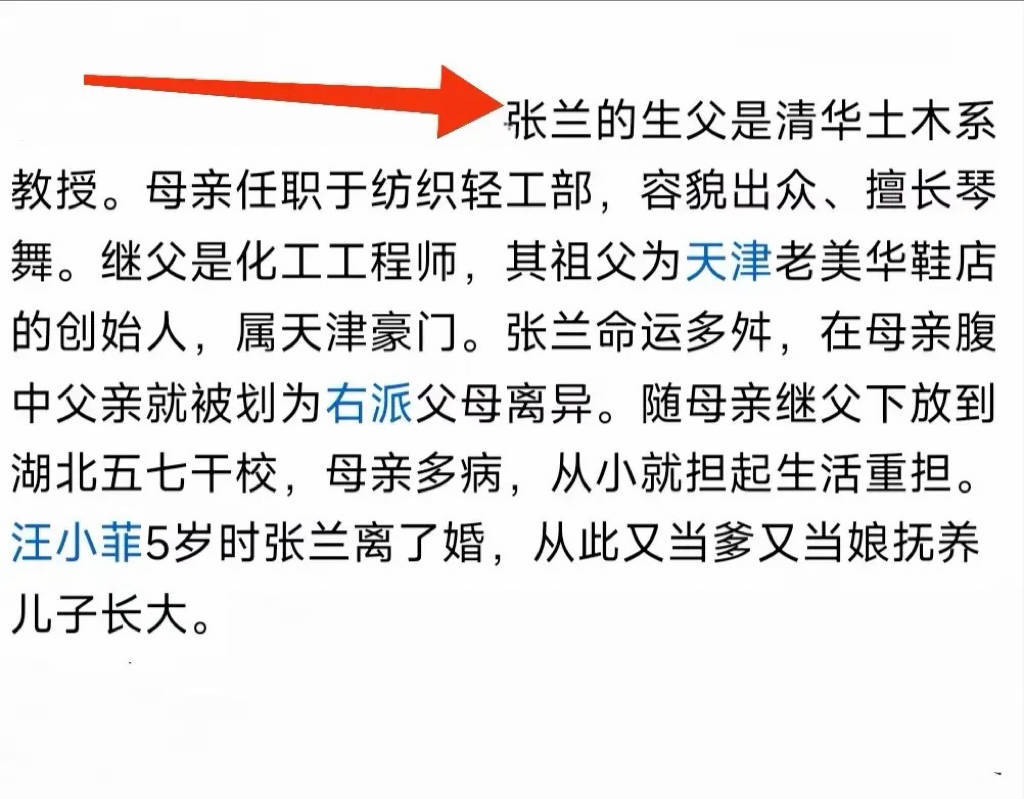 其实,张兰的家世并不简单。她的父亲是清华大学的土木系教授,母亲则在纺织轻工部任职。只可惜,父亲在她出生前便被划为右派,家庭遭遇了极大的变故。她的父母离异后,张兰随母亲和继父下放到湖北五七干校,从小便开始承担起生活的重担。她的婚姻生活也并不如意,汪小菲五岁时她便与丈夫离婚,独自一人照顾孩子,还需照顾公婆,她无疑是一个非常坚韧且隐忍的女性♀️。