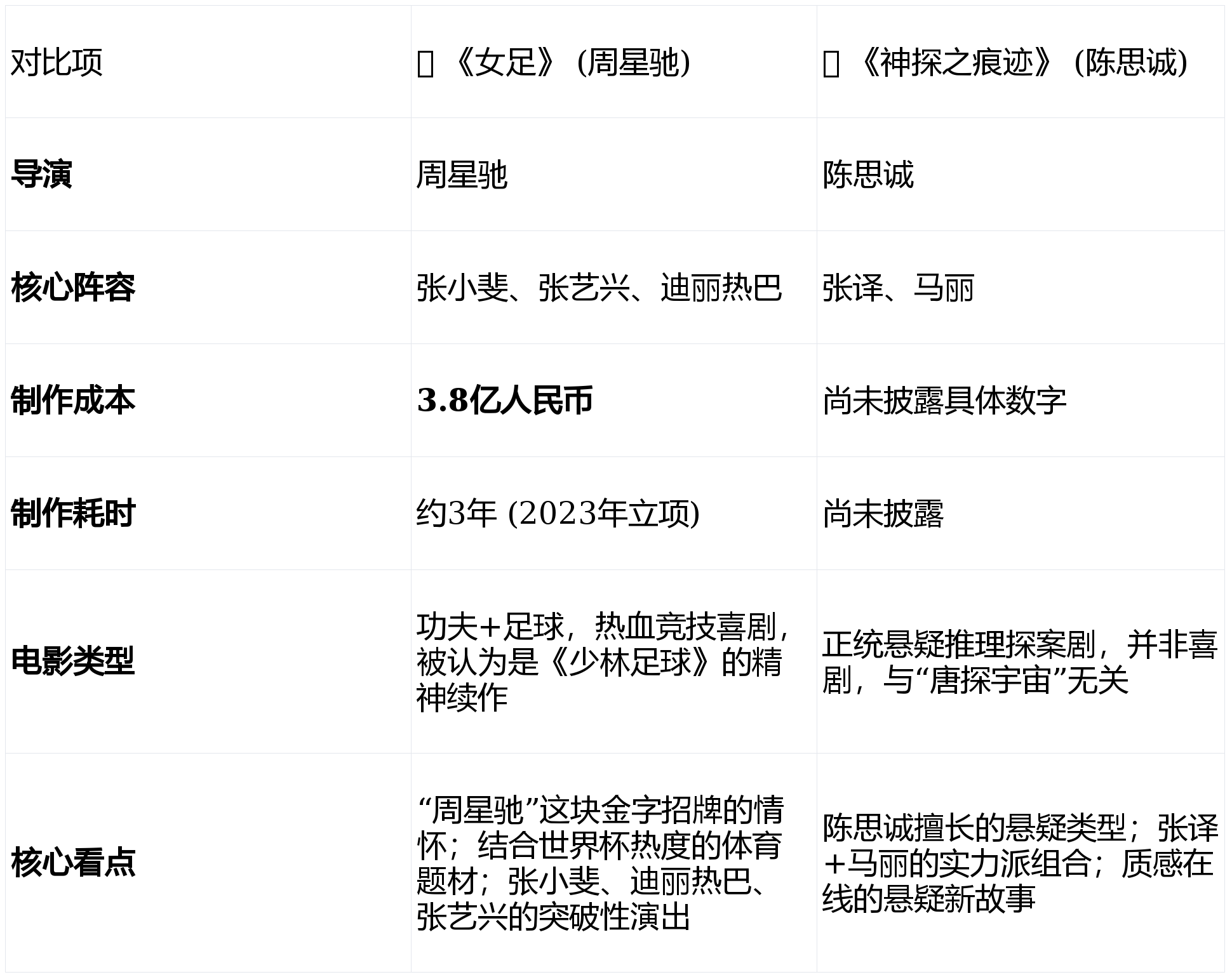 我把目前关于这两部电影的核心信息整理成了一个表格,这样对比起来更清楚: