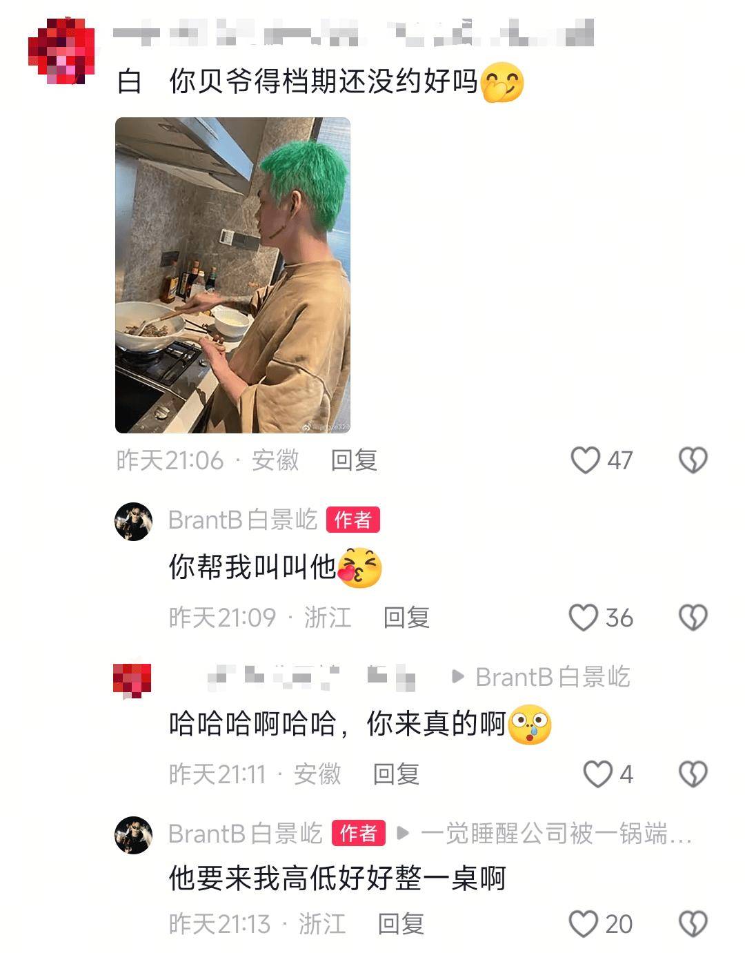 没想到小白直接喊话贝贝来做客,表示让网友帮忙叫叫他,要是来高低好好整一桌。