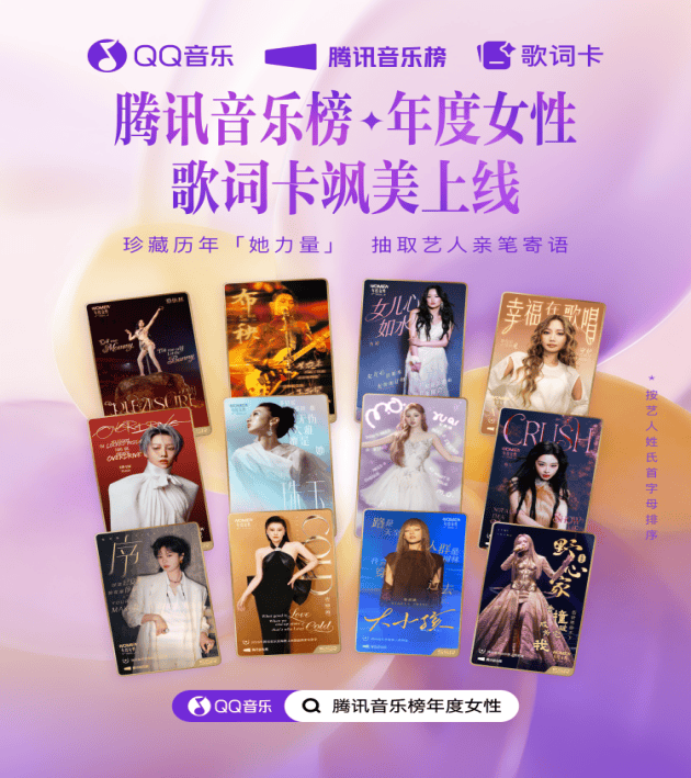 在此次的荣誉名单之外,腾讯音乐榜特别策划了“她力量歌词卡”专属企划,将承载女性♀️心声和态度的歌词金句赋予更具质感的载体与互动玩法,旨在将这份女性♀️力量传播得更深更远。这套歌词卡不仅有本年度入选的女性♀️音乐人的歌曲,还收录了历届年度女性♀️音乐人的经典作品,多位女性♀️音乐人还亲笔写下暖心寄语,为歌词卡注入独一无二的情感温度。