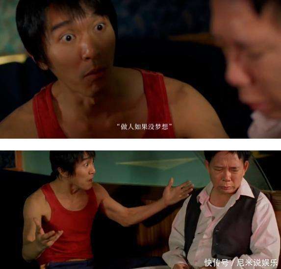 少林足球》的阿星,捡破烂,看着橱窗里高档『运动鞋』默默咽口水。他去求师兄们踢球,却看到的是一群秃顶发福、卑微洗马桶的中年男人。但阿星的眼神仍清澈无比,吐出那句震撼华语影史的台词:做人如果没有梦想,那跟咸鱼有什么分别?