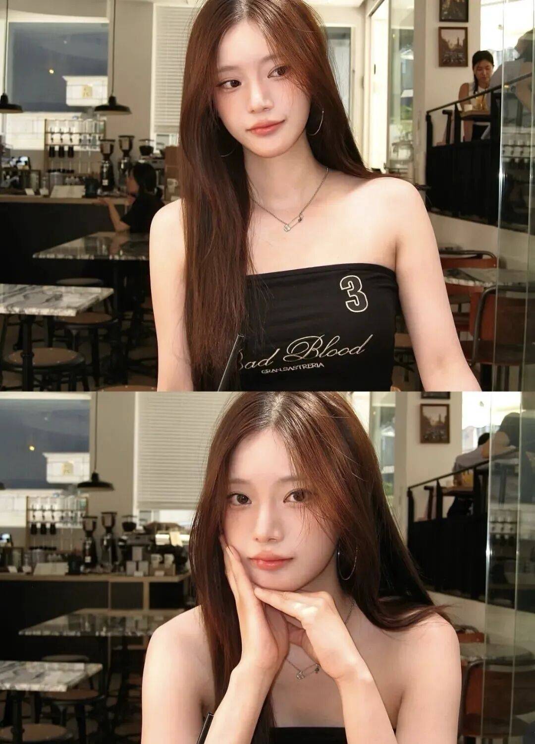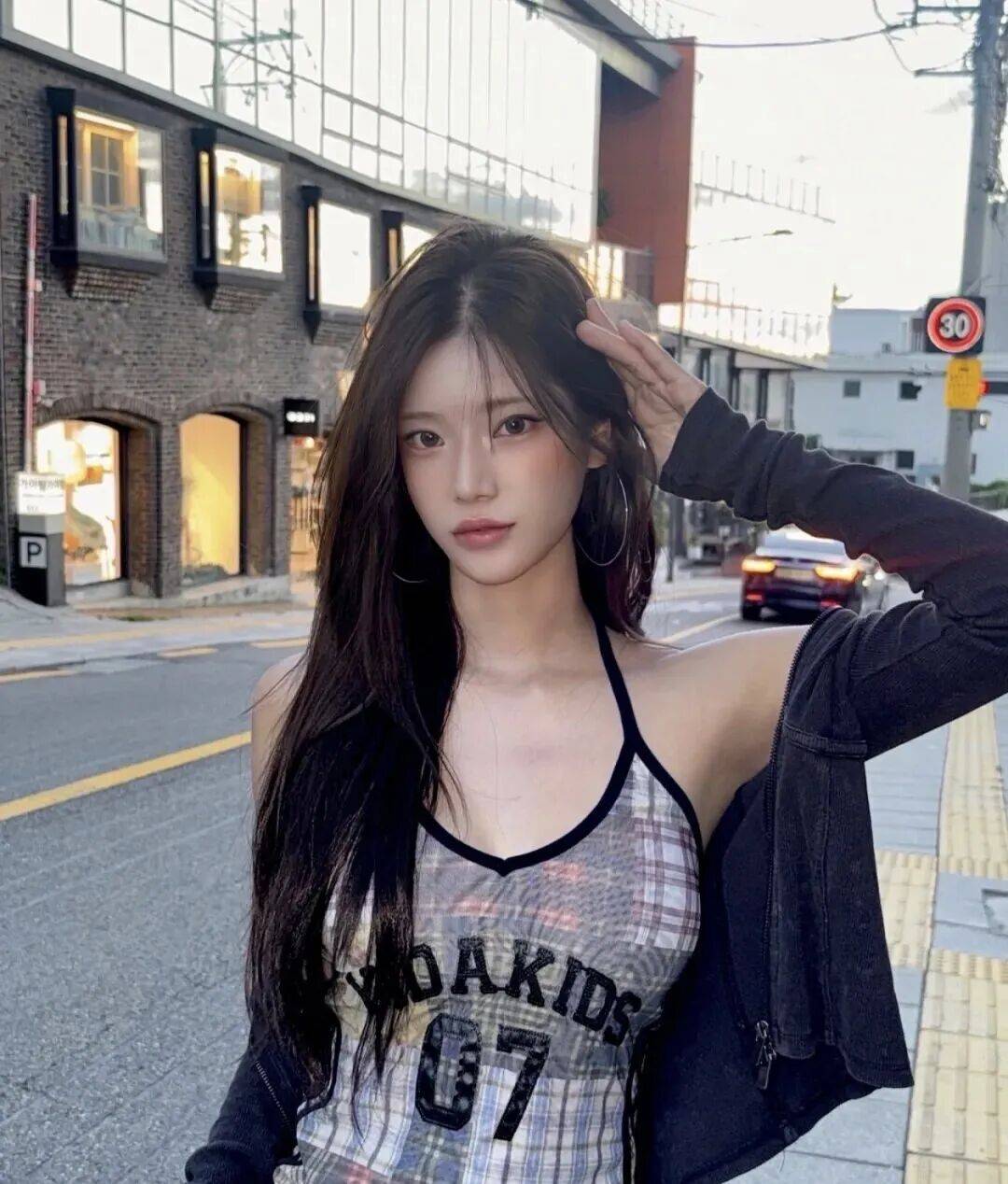 她的颜值堪称韩式美女天花板 —— 拥有如同雪缎般细腻白皙的肌肤,透着莹润水光感,高清镜头下连细微毛孔都难寻踪迹,仿佛自带柔光滤镜,哪怕素颜出镜,皮肤状态也让人惊叹;一双灵动的猫眼眼尾微微上挑,眼瞳是清透的浅棕色,笑时泛起浅浅卧蚕,甜意中带着慵懒,不笑时又有几分冷艳气场;天生的浅棕色野生眉自带时尚感,搭配高挺小巧的鼻子与饱满唇瓣,涂着裸粉唇釉时清新脱俗,换上哑光红棕唇釉又显明艳,每一处五官都精致得恰到好处。