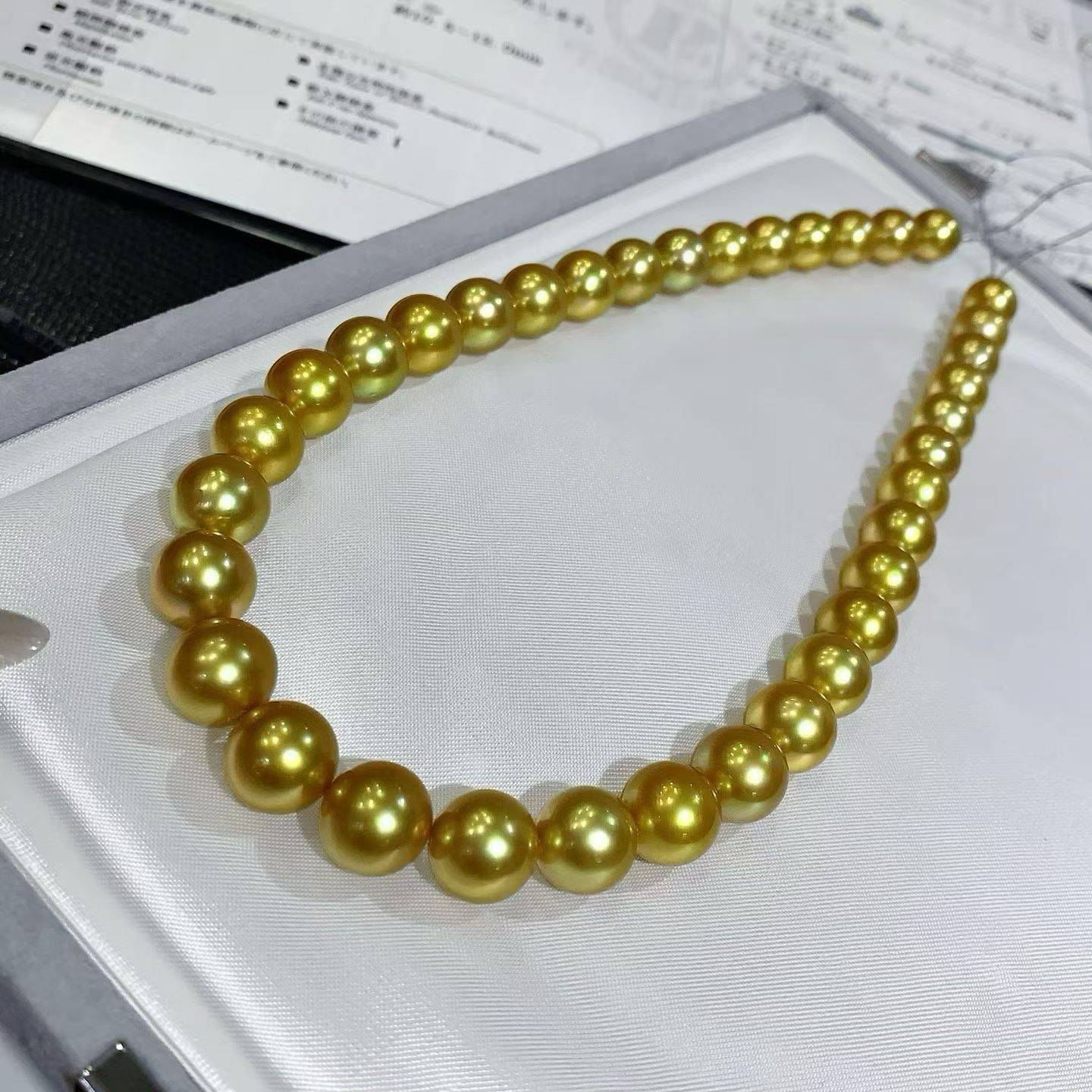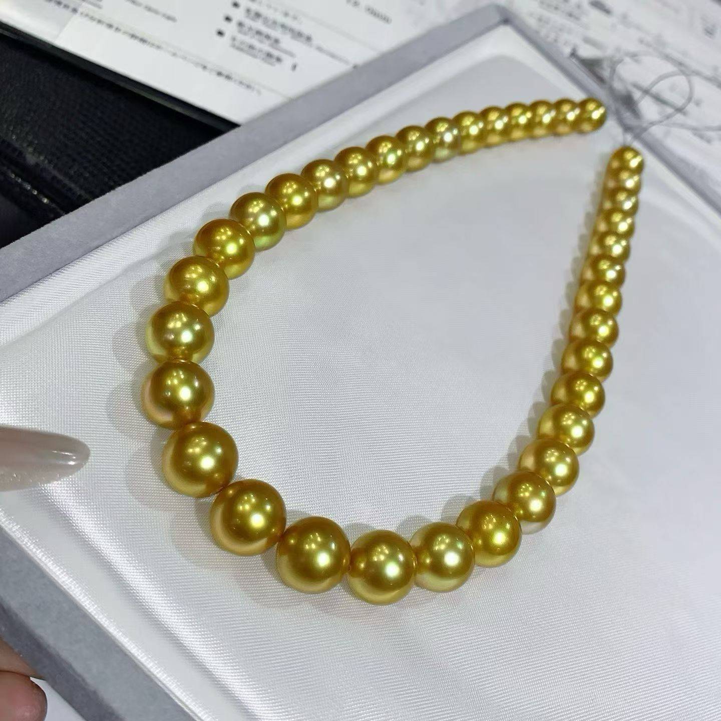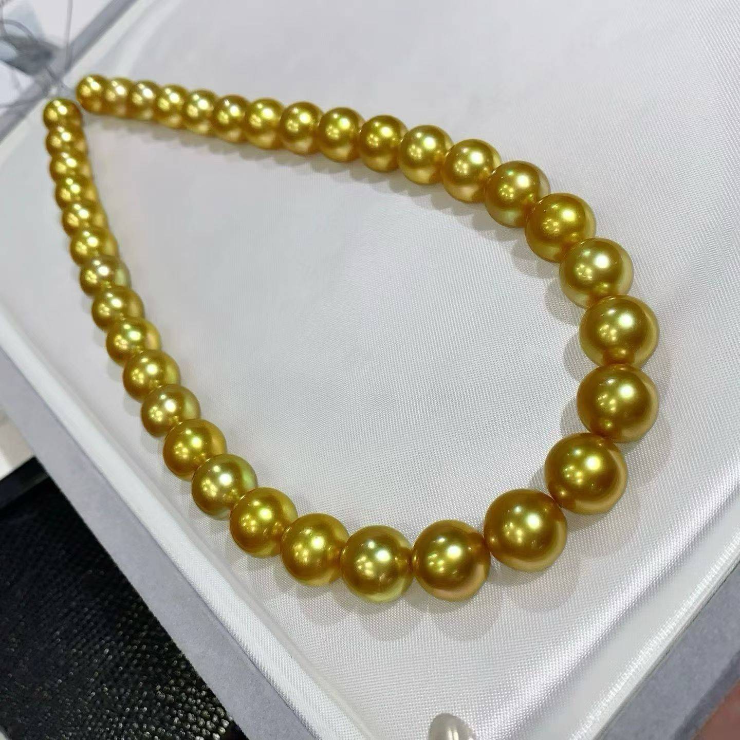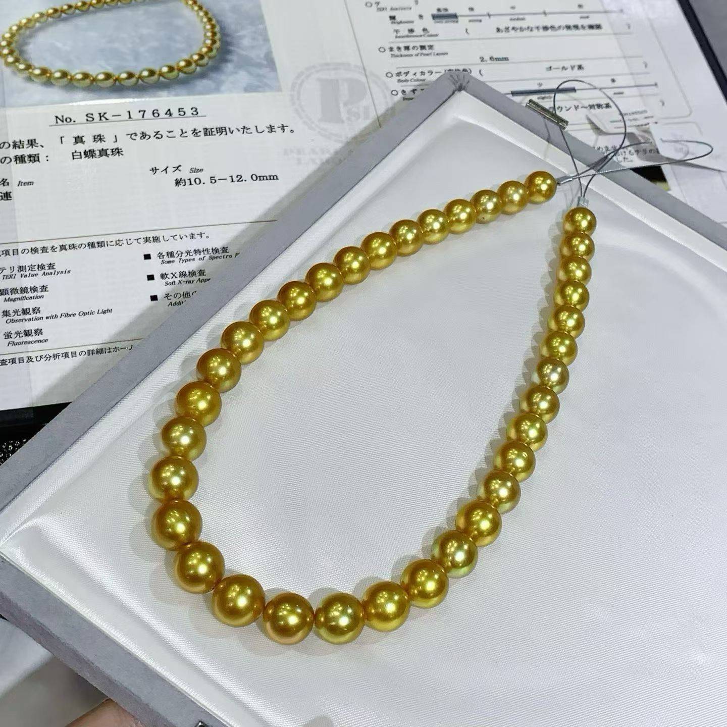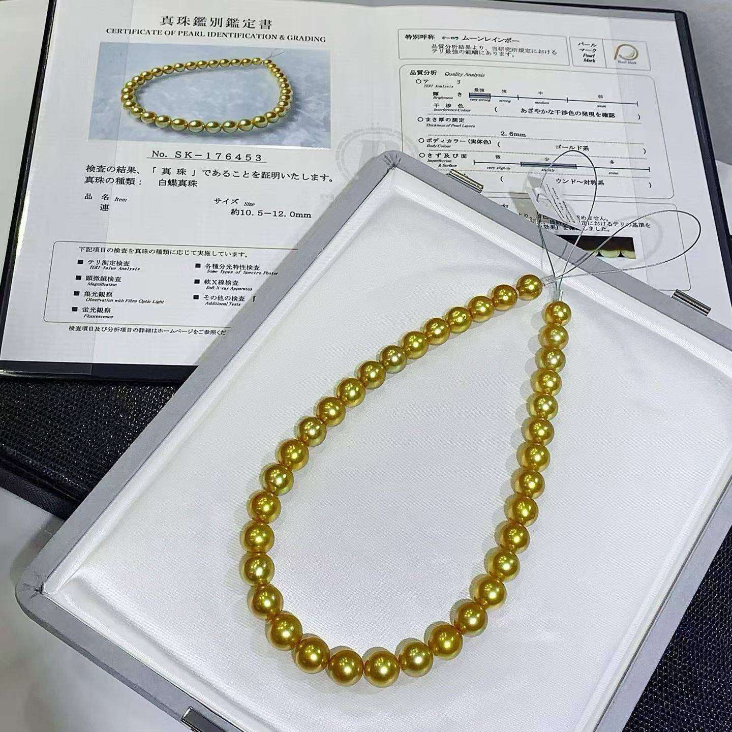 🆕感受南洋金珠的魅力 点亮优雅时刻!✨金光闪闪的超级浓金珠项链10.5-12MM 真科研月亮彩虹 正圆 极微瑕 皮光细腻 珠层:2.6mm ❗️一眼过去就是金灿灿满屏浓郁金绿颜色都是最尖的那种 浓的挪不开视线