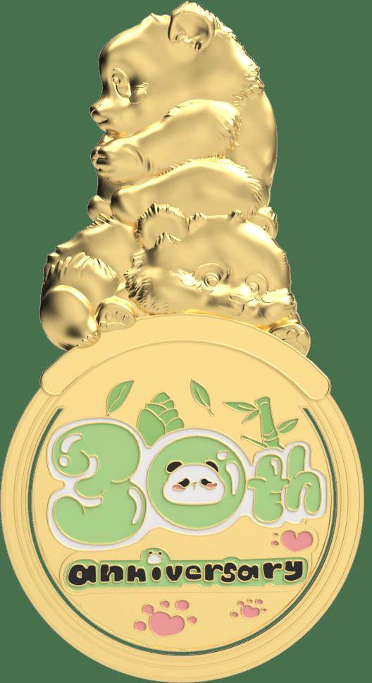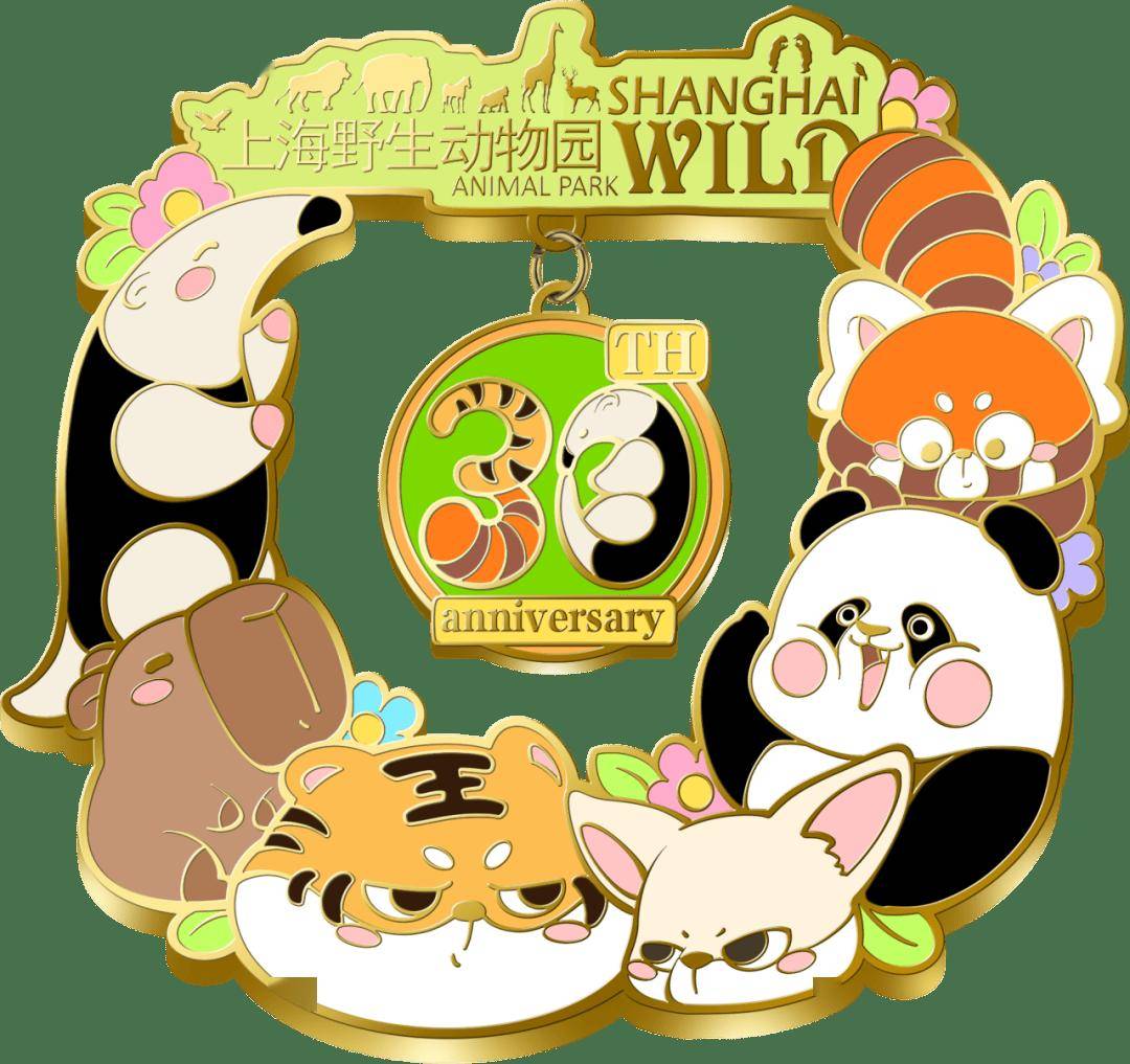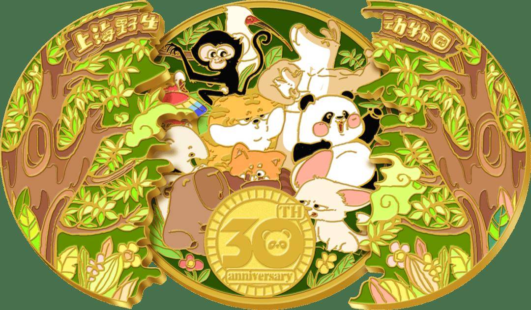 以“庆祝花环”为造型核心,四周环绕『明星』️动物,中央悬挂的是“30周年”吊坠。每款徽章都配有专属编码,限编500,收藏意义十足!