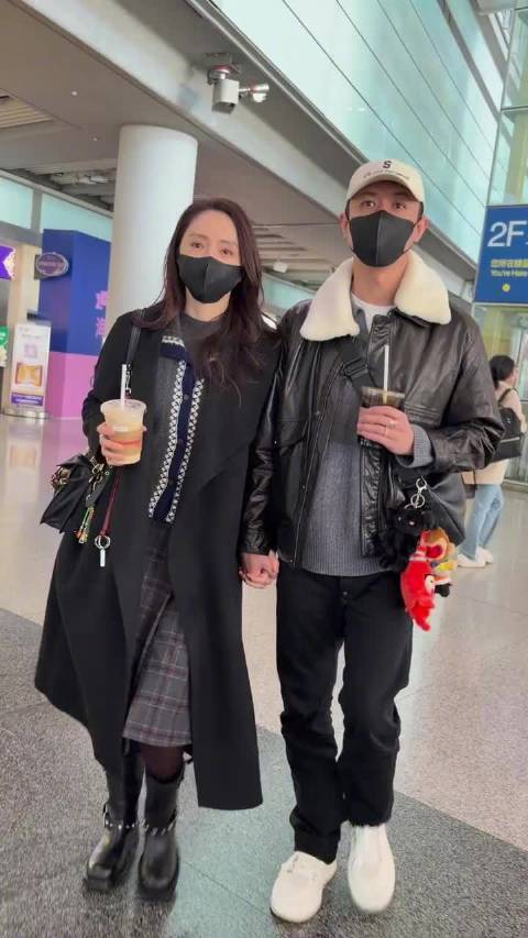 11月20日清晨的北京首都机场,46岁的『董璇』和37岁的张维伊十指紧扣出现在公众视野中。 这是两人领证后首次以如此亲密的姿态在机场同框,全程紧握的双手和无名指上闪亮的婚戒,瞬间点燃了全网热议。