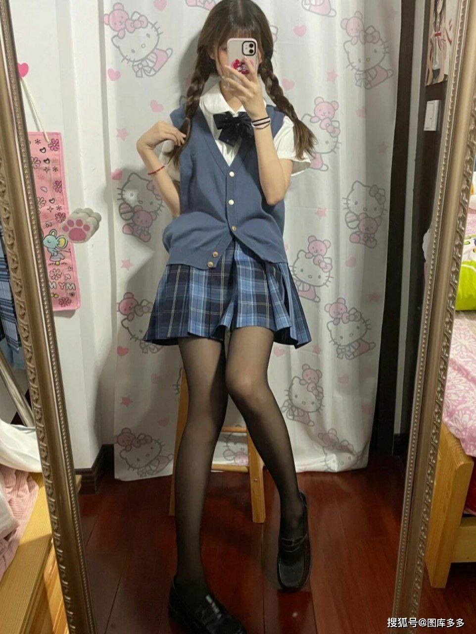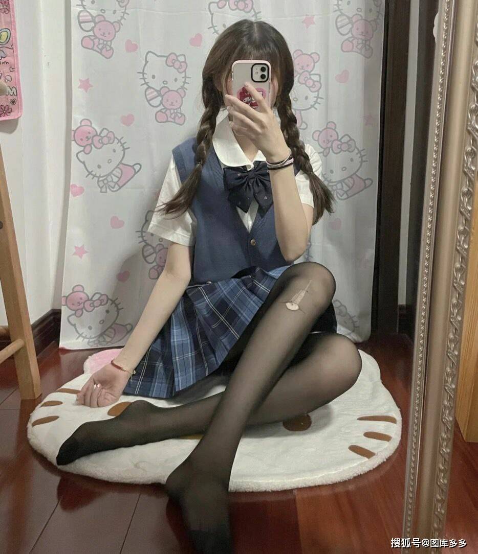 「💖清冷蓝调×软萌黑丝|JK少女の双重风格公式」