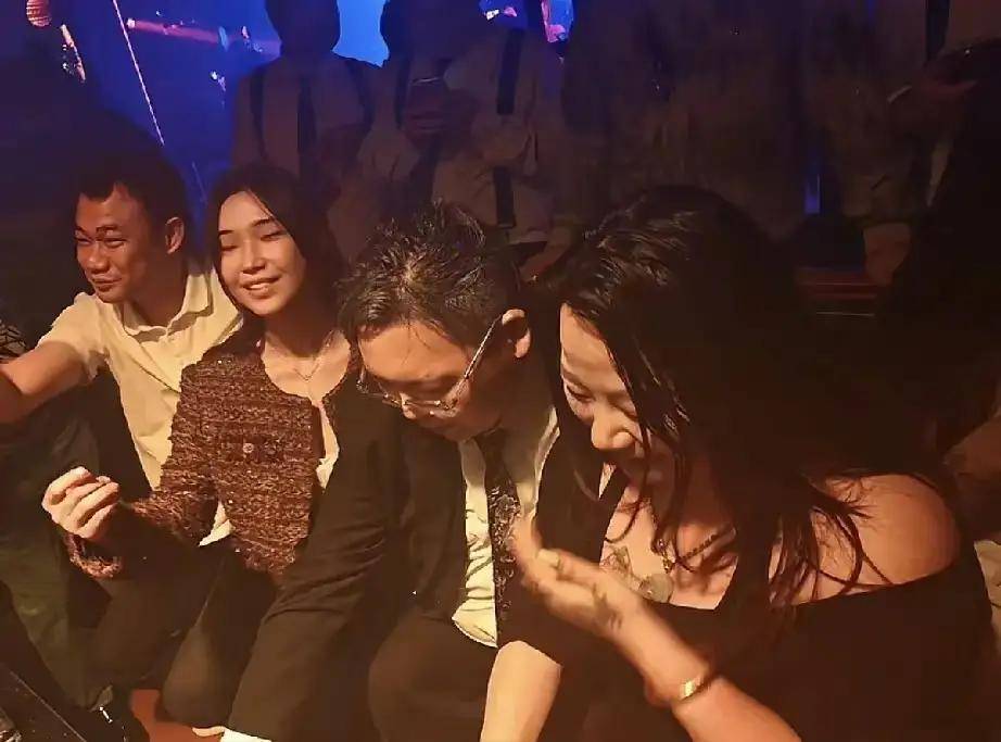 当天,向佑的穿着相对正式,深色西装搭配条纹领带👔,略显突兀地与酒吧的喧闹气氛形成对比。坐下后,他身旁有两位女性♀️陪伴,特别是坐在最右侧的女子,与他互动亲密,时不时低声交谈,时而相视而笑。从两人的肢体语言来看,这位女性♀️应该是向佑的新女友。她性格开朗,交谈时笑容灿烂,手臂和胸前的纹身在灯光下格外显眼。