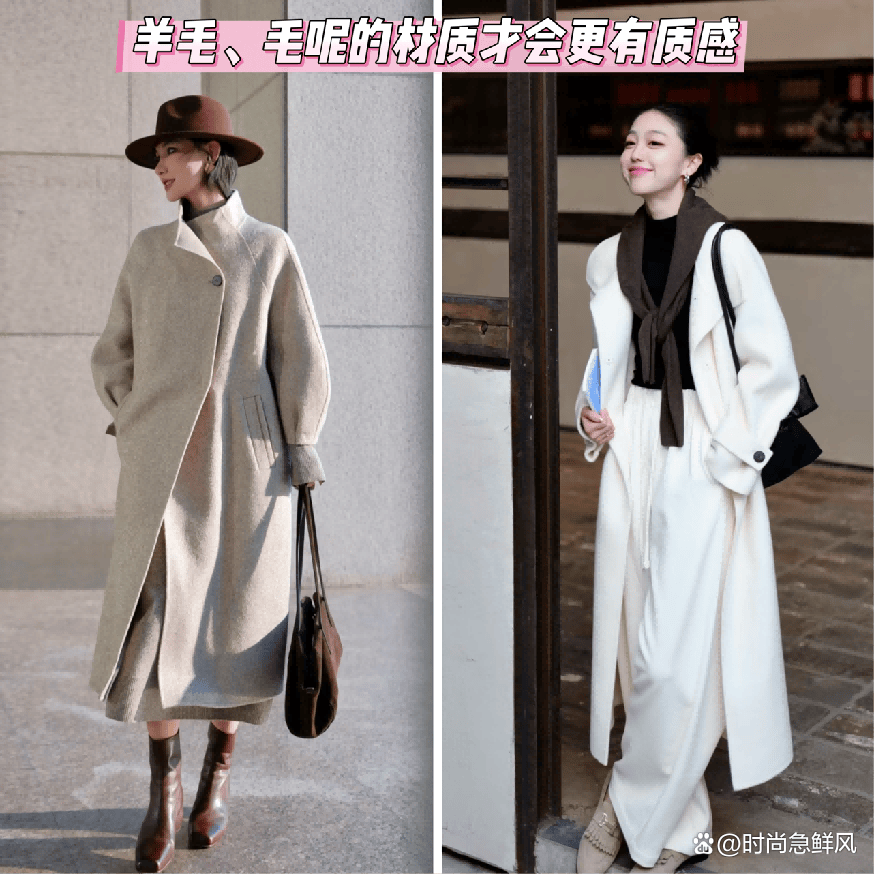 ➋ 材质推荐搭配:羊毛、高质感的毛呢