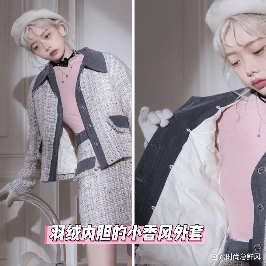 二、带羽绒的:小香风外套🧥,可真的是很百搭!