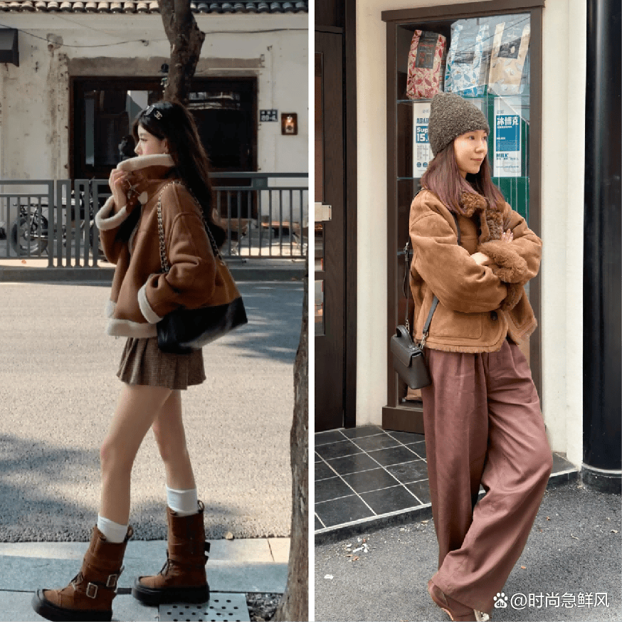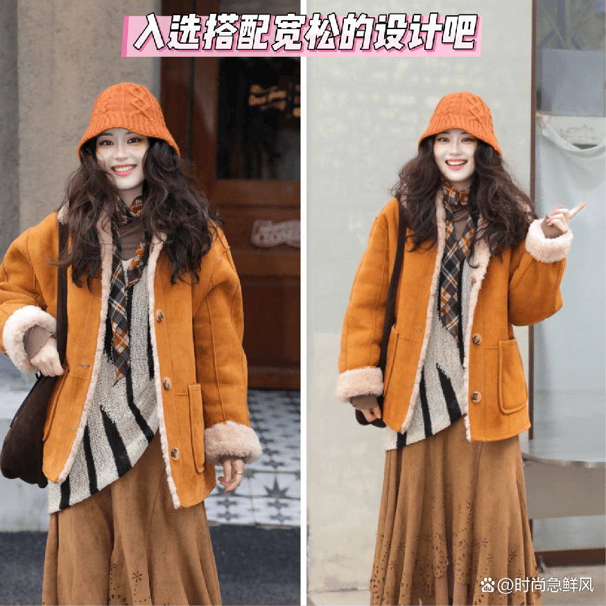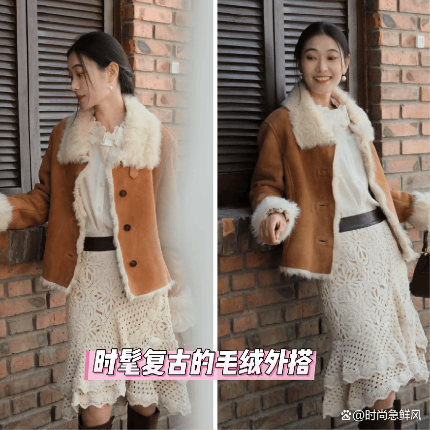 三、复古感设计的{毛绒外套🧥},好穿时尚
