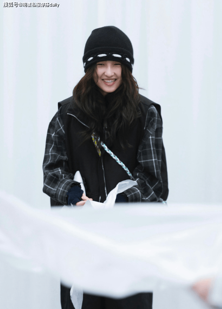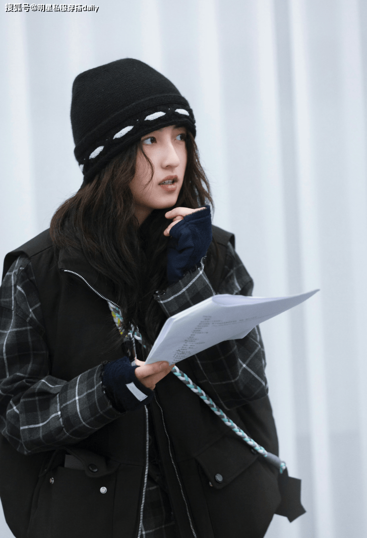 黑色格纹衬衫作为一种文艺气息十足的单品,『张子枫』外搭了一件黑色棉服马甲背心,配色低调简约,又不失高级,没有单调的感觉!