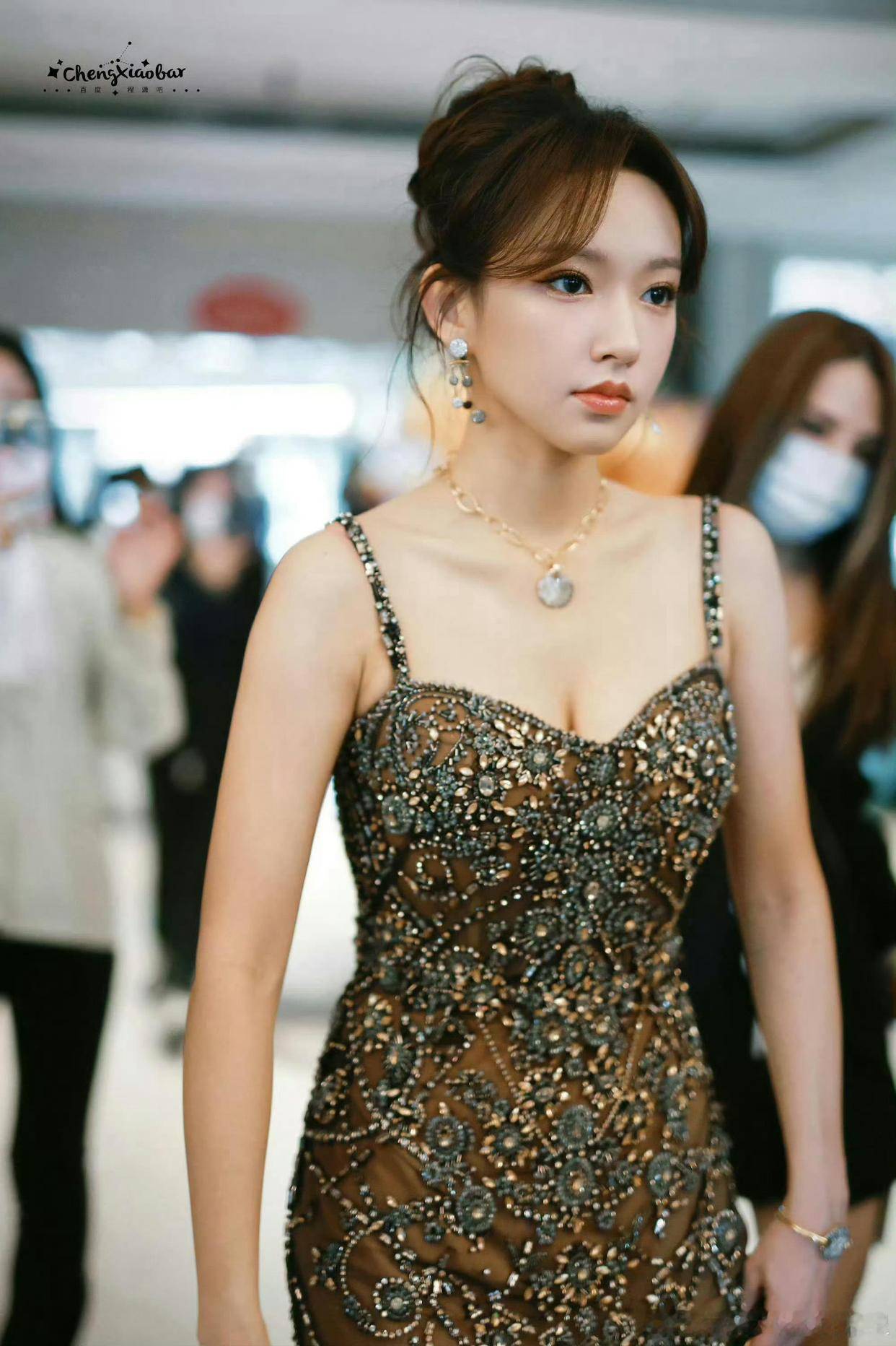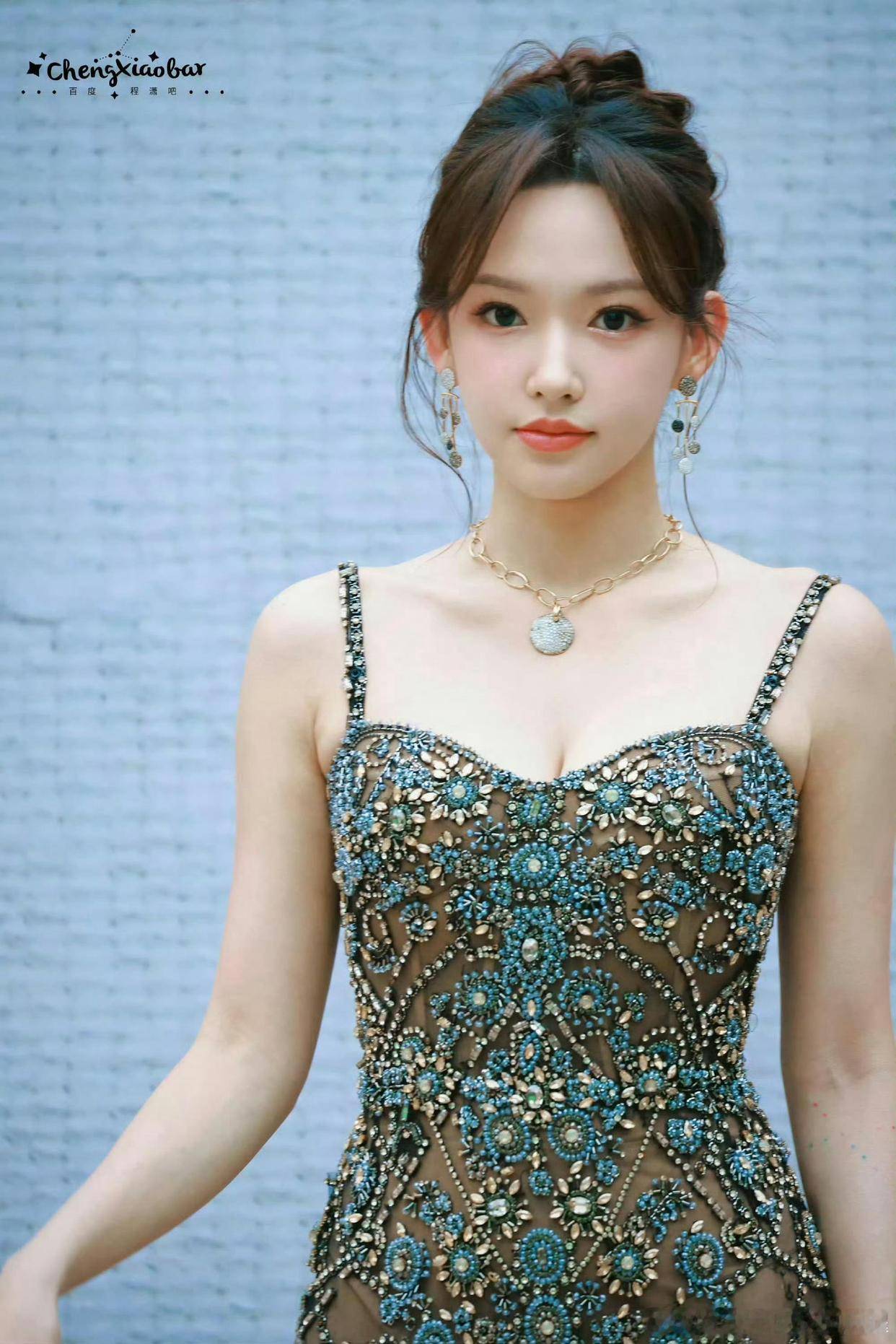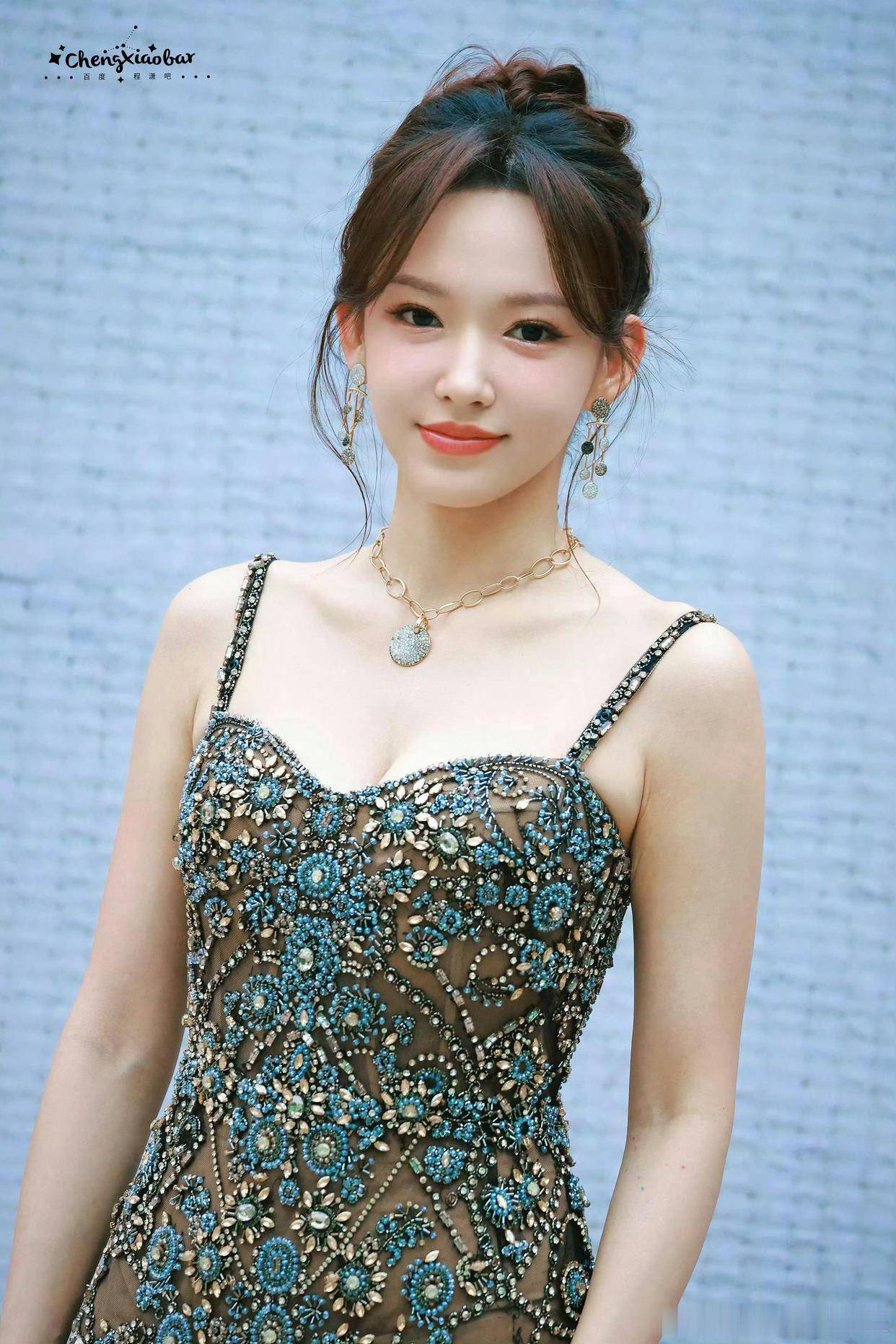 这套『穿搭』的vintage charm(复古魅力)真的很绝。钉珠的图案和配色带着浓浓的复古韵味,仿佛把我们拉回了那个华丽的年代,而吊带裙的现代剪裁又让整体造型不会过于陈旧。『程潇』的 “奶潇” 身材在这种复古风格的衬托下,多了一份别样的风情,既有少女的娇俏,又有成熟女性♀️的性感,层次丰富又极具吸引力。