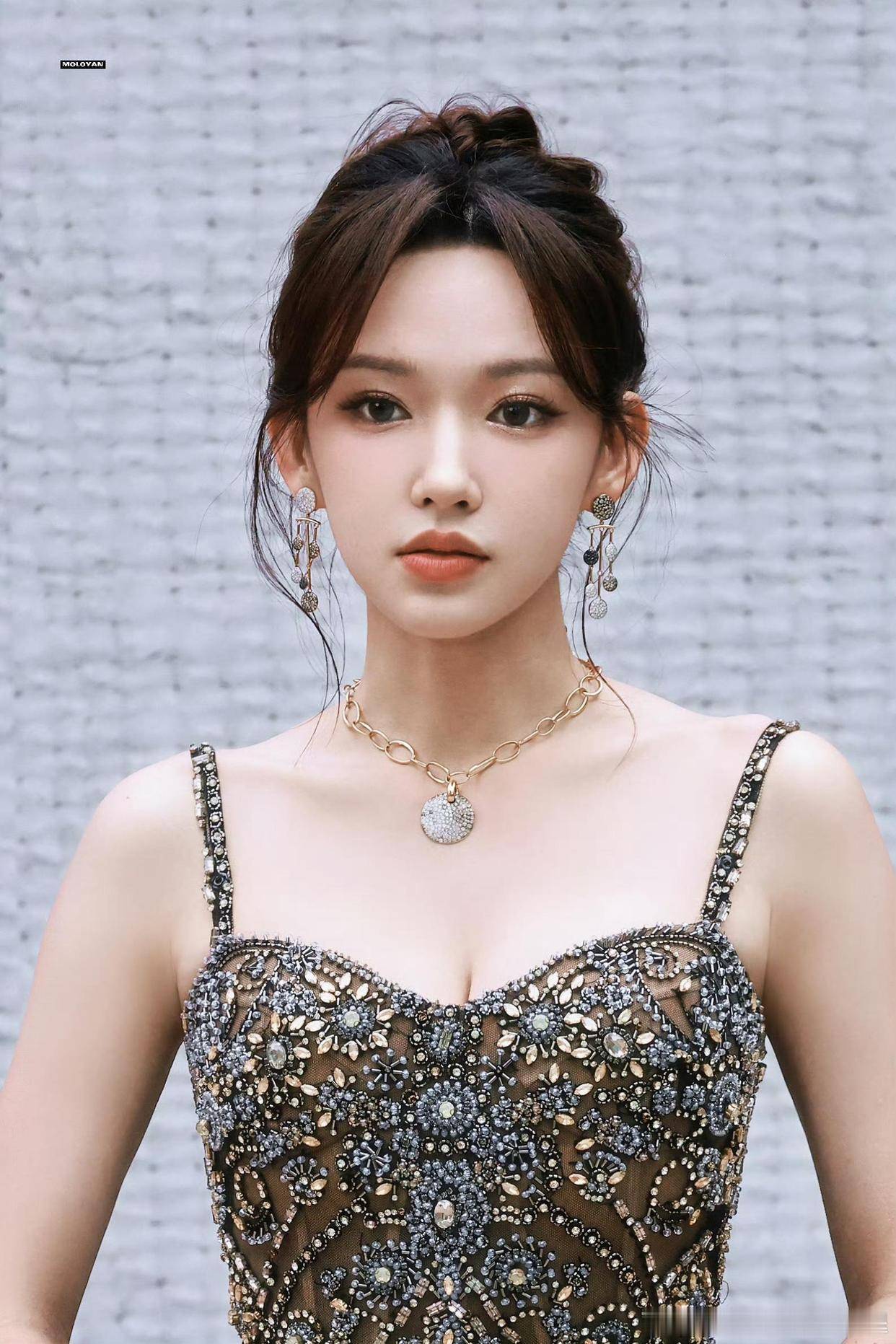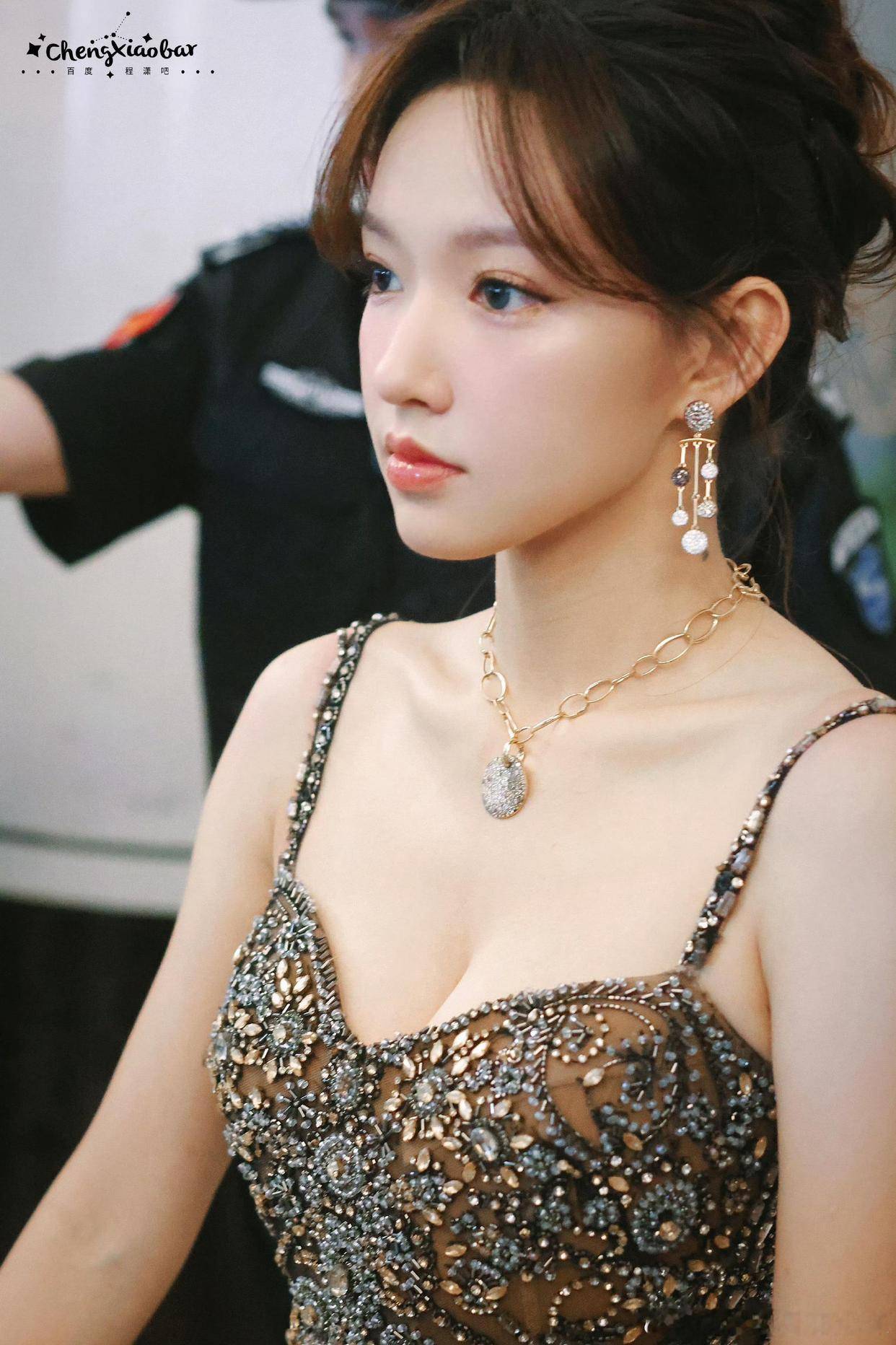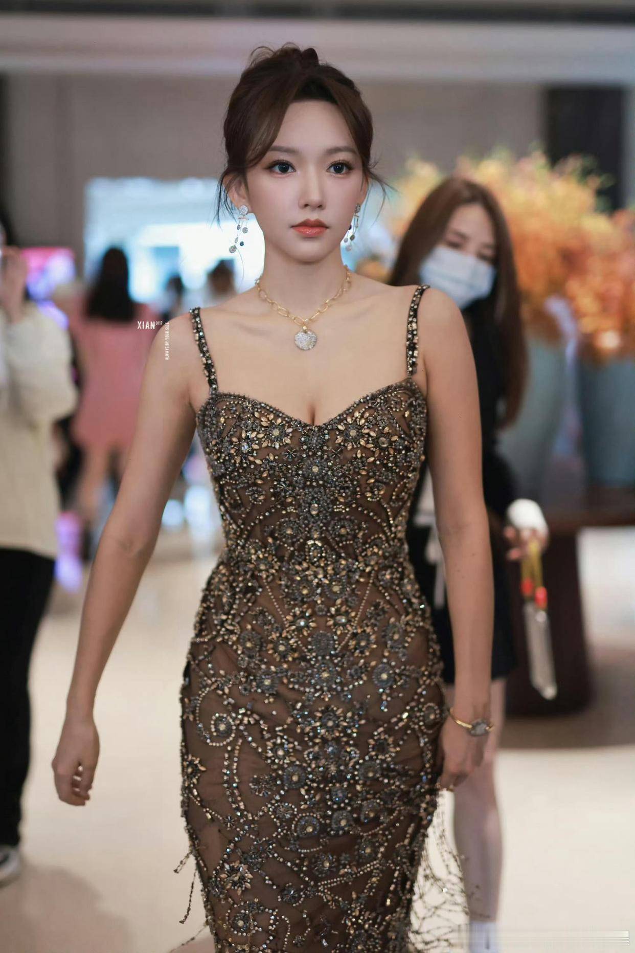 这套『穿搭』的vintage charm(复古魅力)真的很绝。钉珠的图案和配色带着浓浓的复古韵味,仿佛把我们拉回了那个华丽的年代,而吊带裙的现代剪裁又让整体造型不会过于陈旧。『程潇』的 “奶潇” 身材在这种复古风格的衬托下,多了一份别样的风情,既有少女的娇俏,又有成熟女性♀️的性感,层次丰富又极具吸引力。
