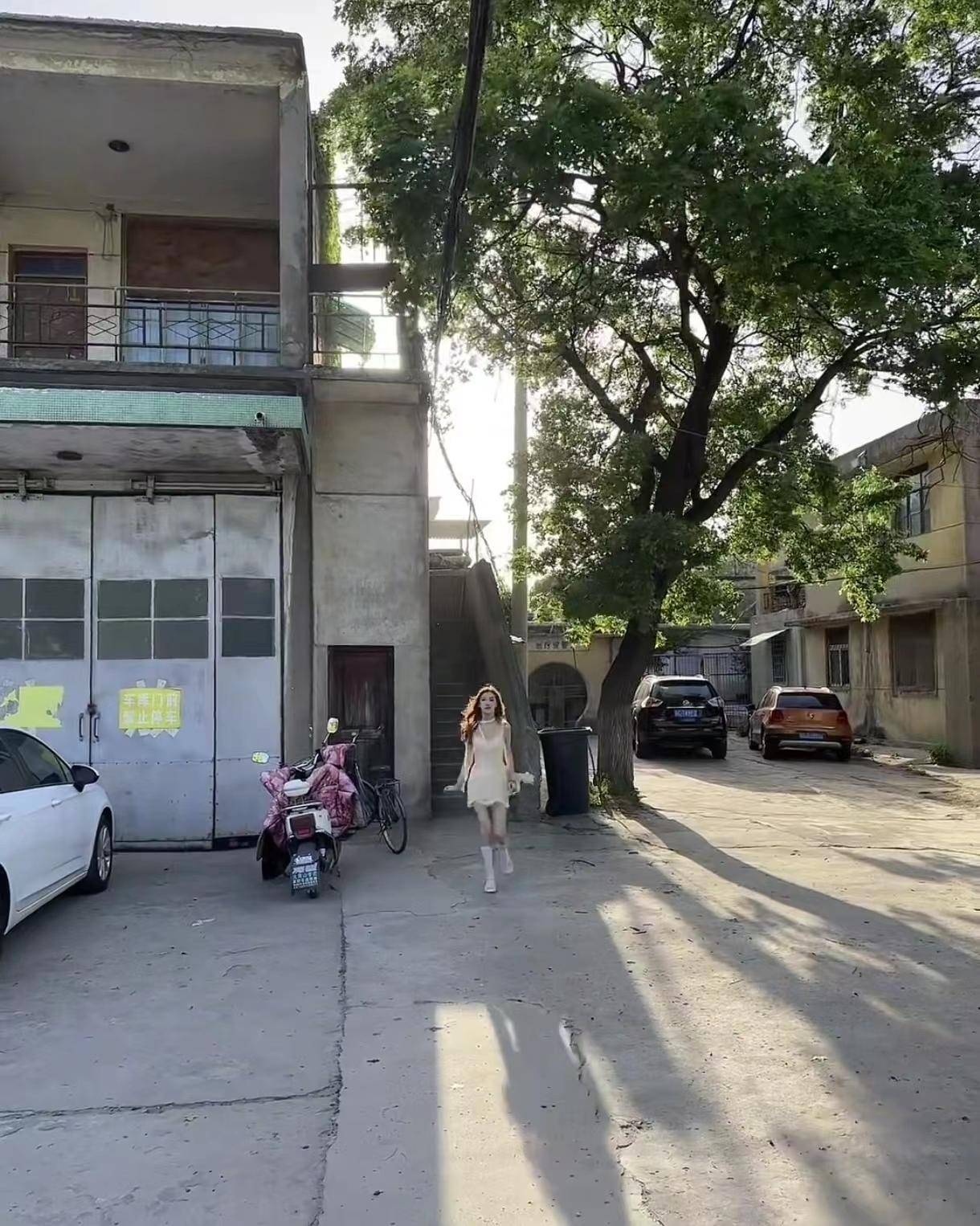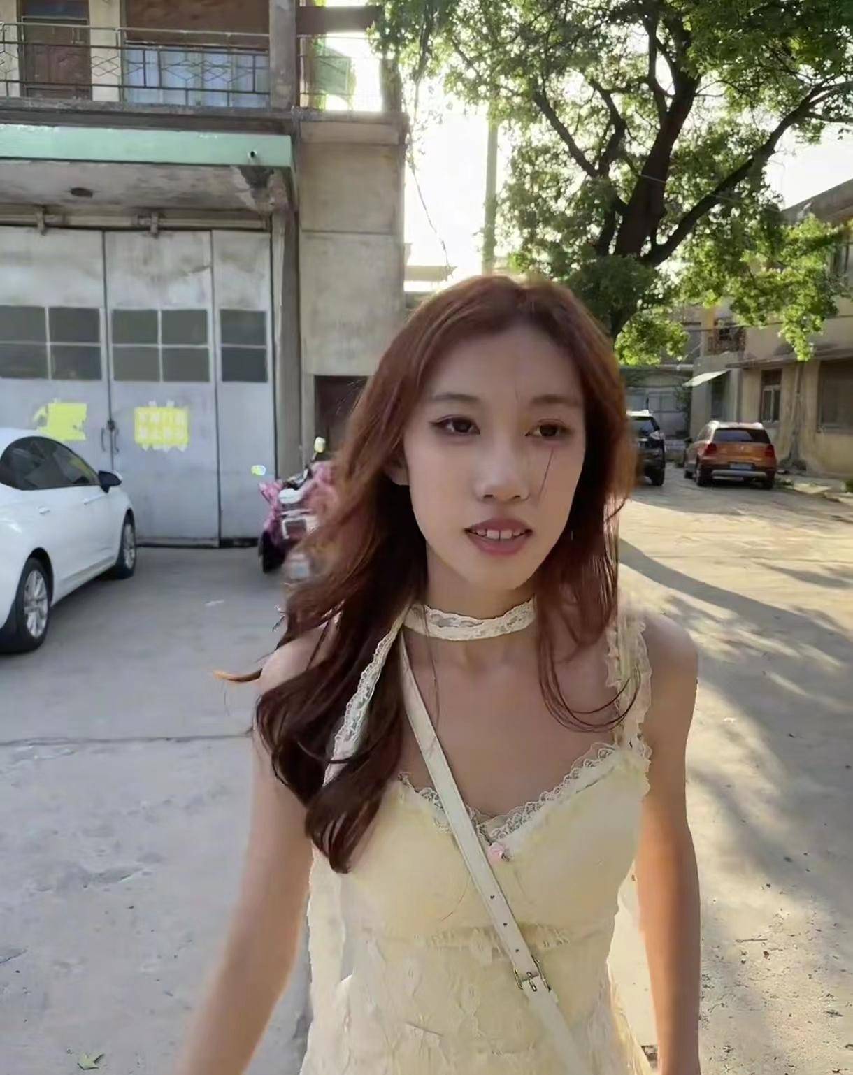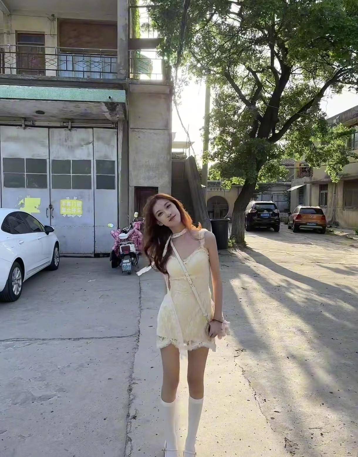 镜头中一位身材高挑,穿着吊带裙和白丝袜的女孩让人眼前一亮:好漂亮啊!