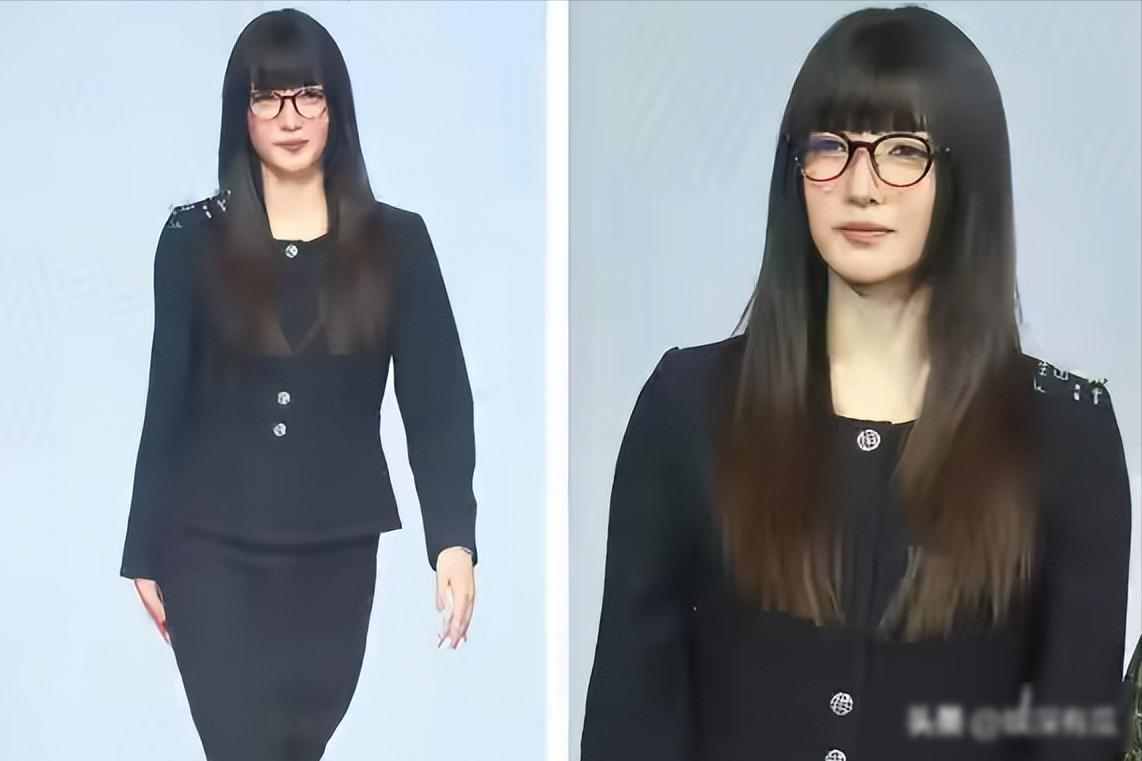 最近有网友拍到『江疏影』现身某个品牌活动,她穿一身黑,外套🧥搭短裙,腿上裹着丝袜,戴黑框眼镜👓,前额垂着齐刘海,看着像中学里管纪律的老师,脸型比以前宽了不少,下巴也显得重了,神情不太自然,跟当年那个清冷利落的样子,差得有点远。