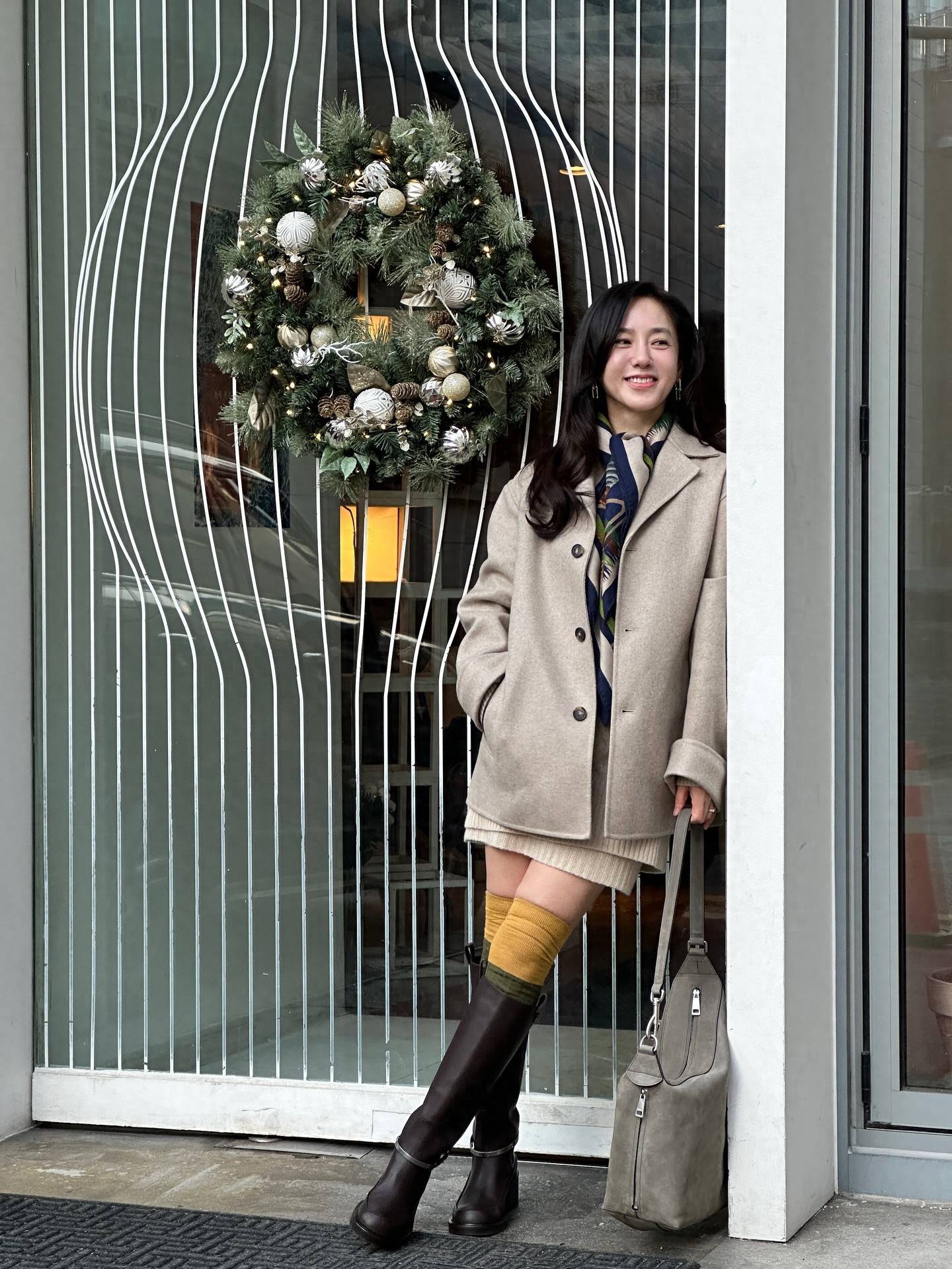 而最让人印象深刻的,莫过于她的『穿搭』。她巧妙地将长靴与迷你连衣裙👗搭配,再加上一件大衣,演绎了一种既时尚又年轻的冬季造型。这样的『穿搭』风格,毫无违和感,反而让她看起来比实际年龄年轻了整整二十岁,简直是“冻龄”的典范。
