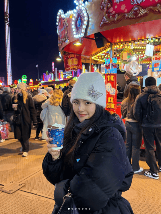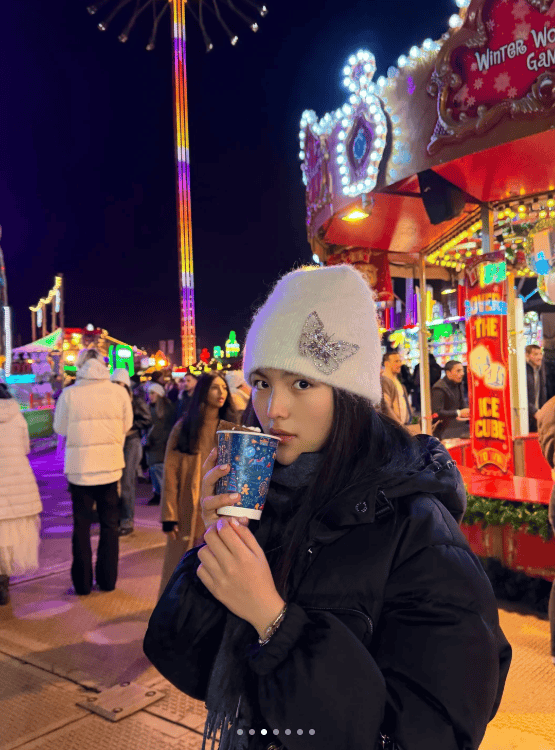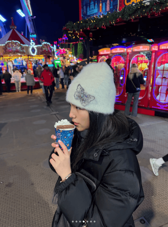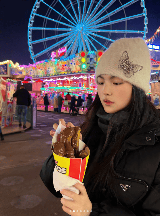 这次王诗龄没有过多的修饰,凭借着深邃的大眼睛和黑长直就能看出她的美来,逛夜市自然少不了吃喝,买了浇满巧克力的鸡蛋仔,还买了一平装满奶油的奶茶,这吃起来喝起来身上自然就暖和和的了。