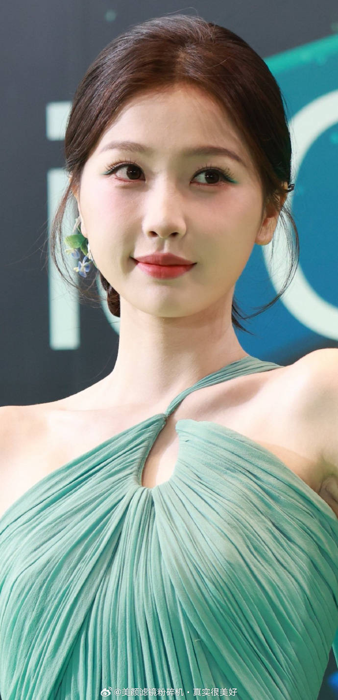 **造型**:墨绿鱼尾长裙👗+复古盘发,腰线以下全是腿,腰线以上全是戏。