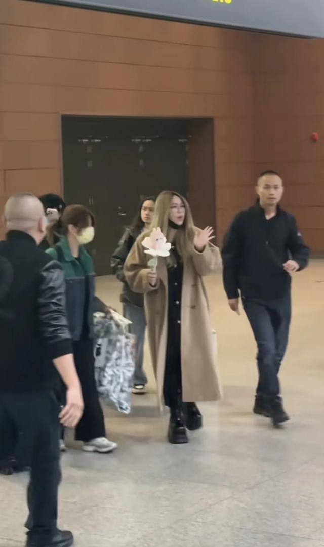尽管人群拥挤,张惠妹却始终面带微笑,礼貌地与粉丝们互动,配合拍照,甚至还与一些热情的粉丝短暂地交流了几句。