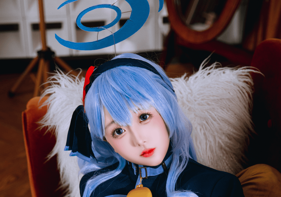 值得一提的是,日奈娇特别还原了角色经典的 “腰间设计” 与黑色长袜 + 厚底靴的搭配,既贴合游戏立绘的核心特征,又通过面料的质感呈现,让制服在居家场景中不显突兀。发间点缀的红色配饰与蓬松的淡蓝色卷发相得益彰,眉眼『妆容』以清新色调为主,眼尾微微上扬的弧度,恰好捕捉到亚子 “认真中带点小俏皮” 的神韵,仿佛从游戏里走出来的风纪委员,在自家客厅开启了 “带薪摸鱼” 模式。
