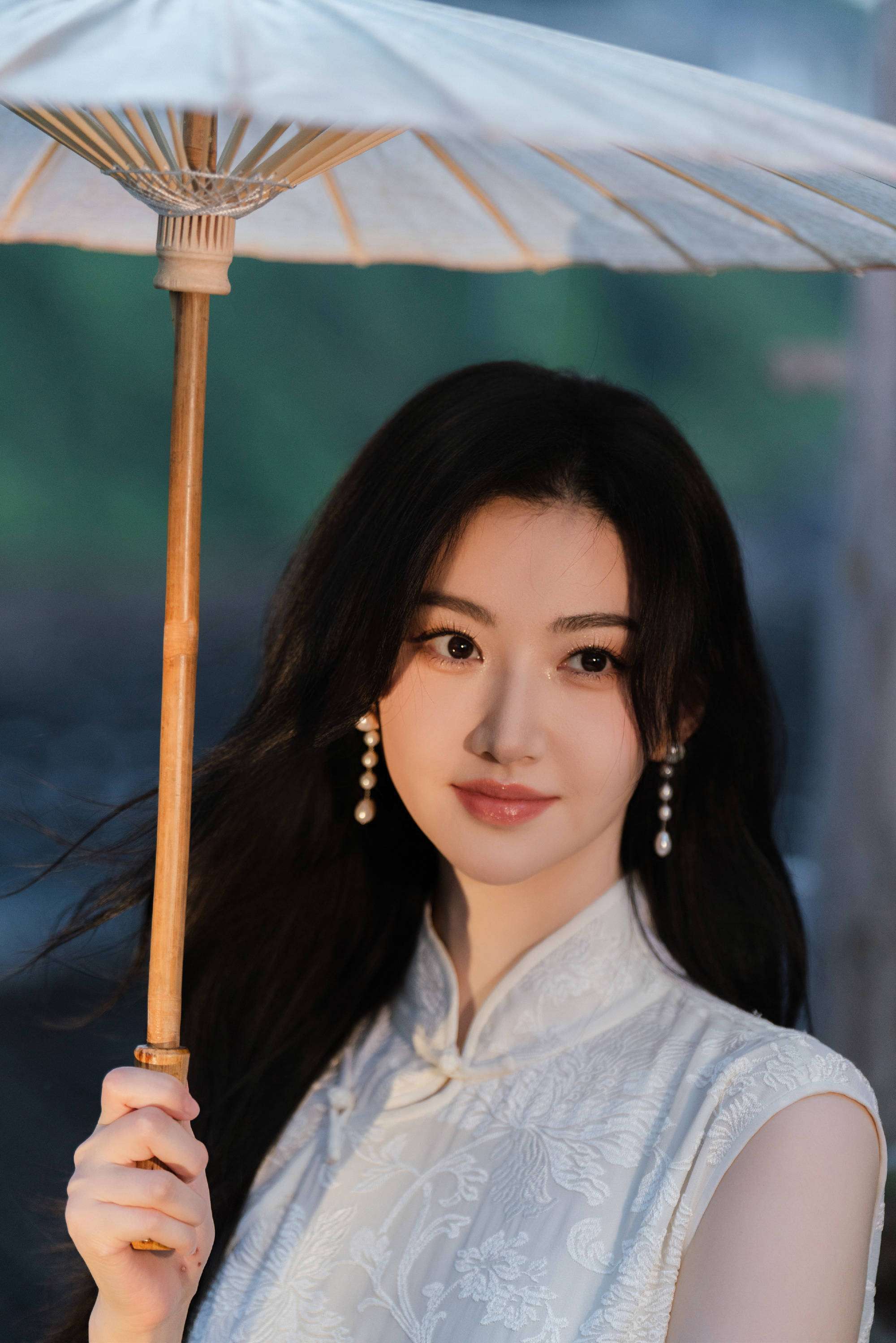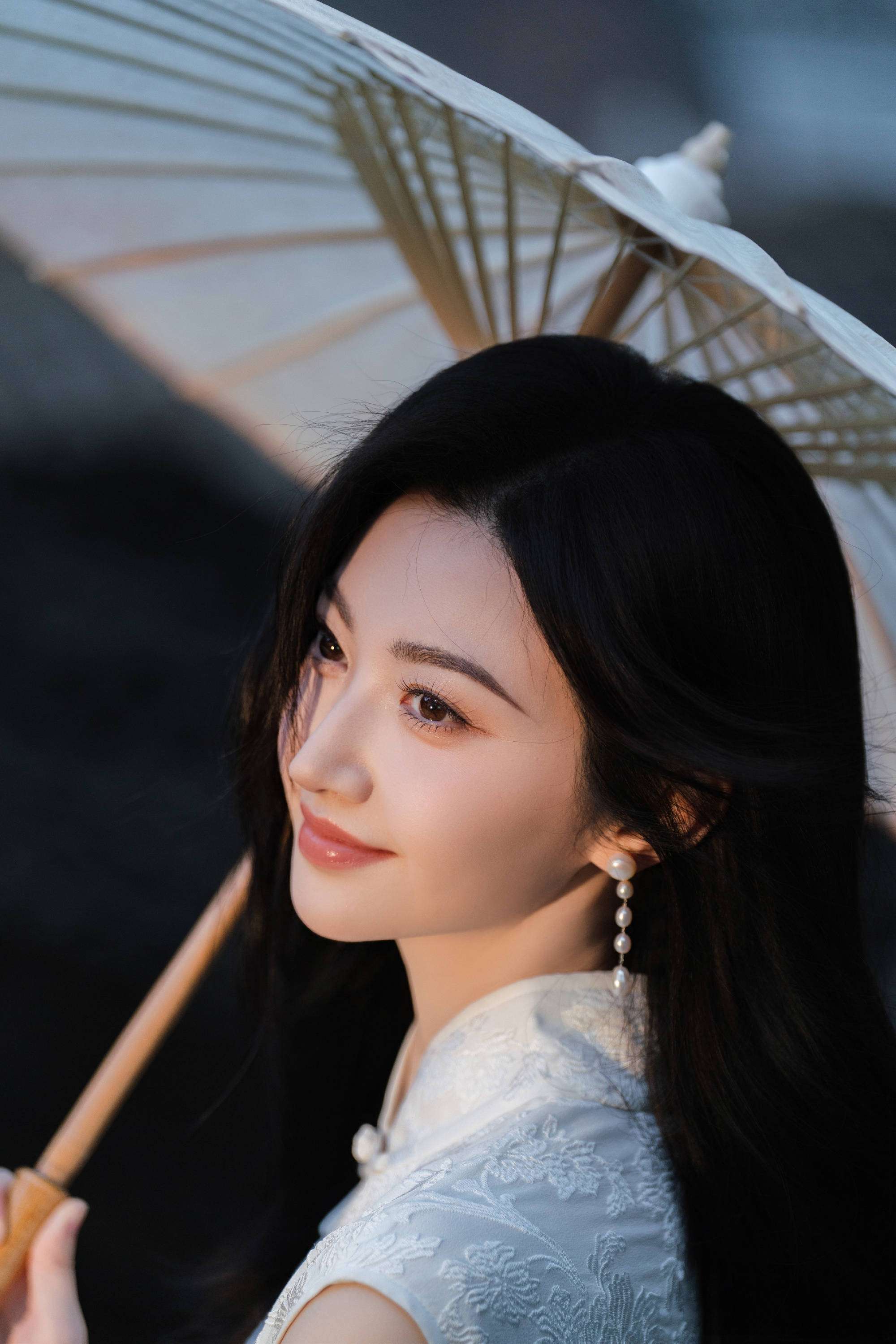 提到『景甜』,以前总是绕不开“甜”字,但在这组写真里,她的甜不再是单纯的甜美,而是化作了润物无声的温柔。她撑伞时眼尾微弯的弧度,像是江南的明月;她执扇时轻启的唇瓣,笑意如雨打芭蕉,温柔却不张扬。她的美不再尖锐,而是像温玉一般润泽,缓缓舒展。就像是从书香门第里走出来的女孩,读书、见世面,却将锋芒巧妙地隐藏在温柔中。