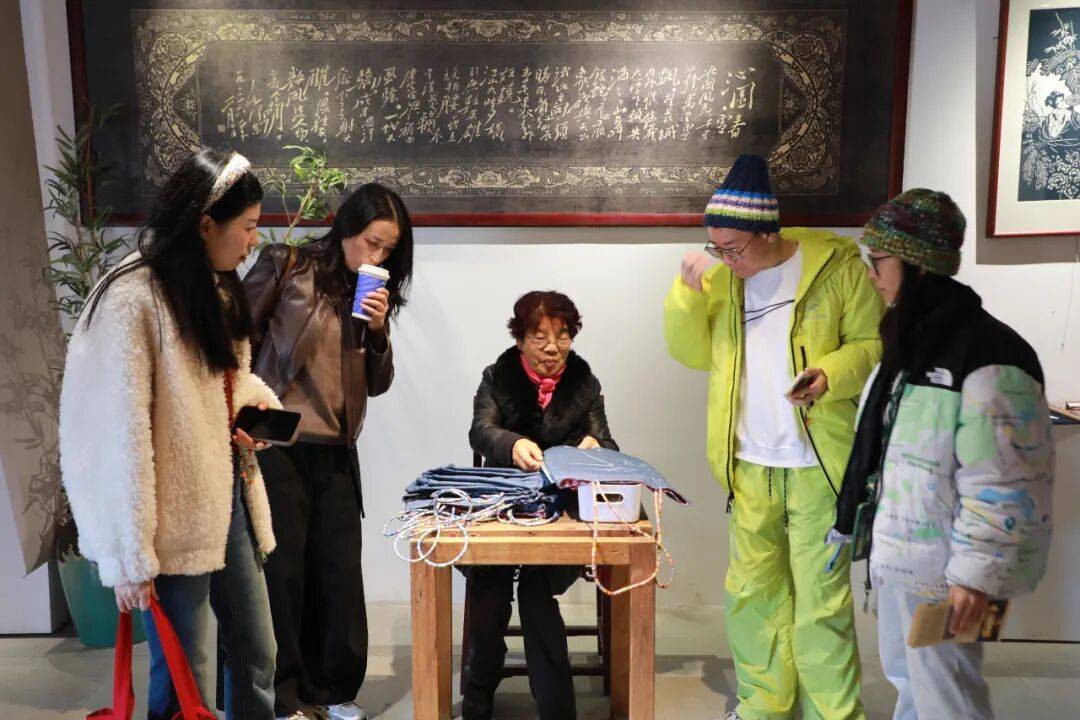 以往剪纸多作为蓝印花布的底样,而本次展览彻底颠覆这一路径:创作团队将剪好的唐风宋韵纹样,用不褪色颜料直接印在包袋、服装上,让剪纸从“幕后底样”变成“视觉主角🎭️”。“原来中国风可以这么潮!”一位年轻观展者表示,穿上印着剪纸纹样的衣服,既能感受传统美学,又不显得厚重,这正是对“最美还是中国风”的最好诠释。