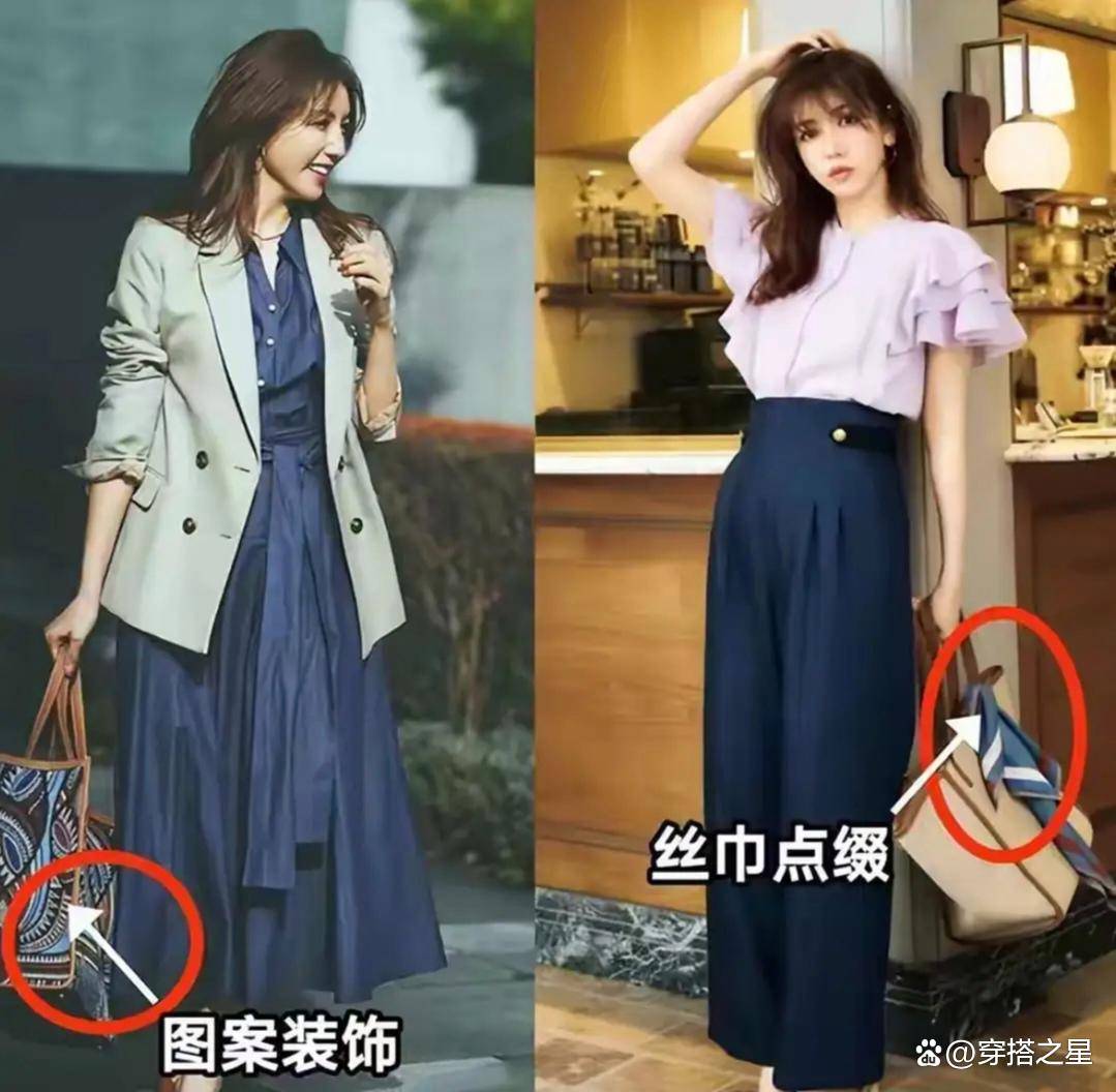 看上去不起眼的包包,颜色一旦选错了,就会瞬间拉低造型的档次,包包的颜色、图案、装饰,都可以和服装形成巧妙的呼应。