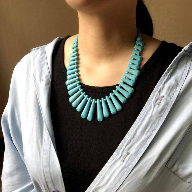 如今内沙布尔的绿松石依然抢手,从几百块的小戒指💍到上万元的手串应有尽有,『明星』️佩戴后更是火出圈。