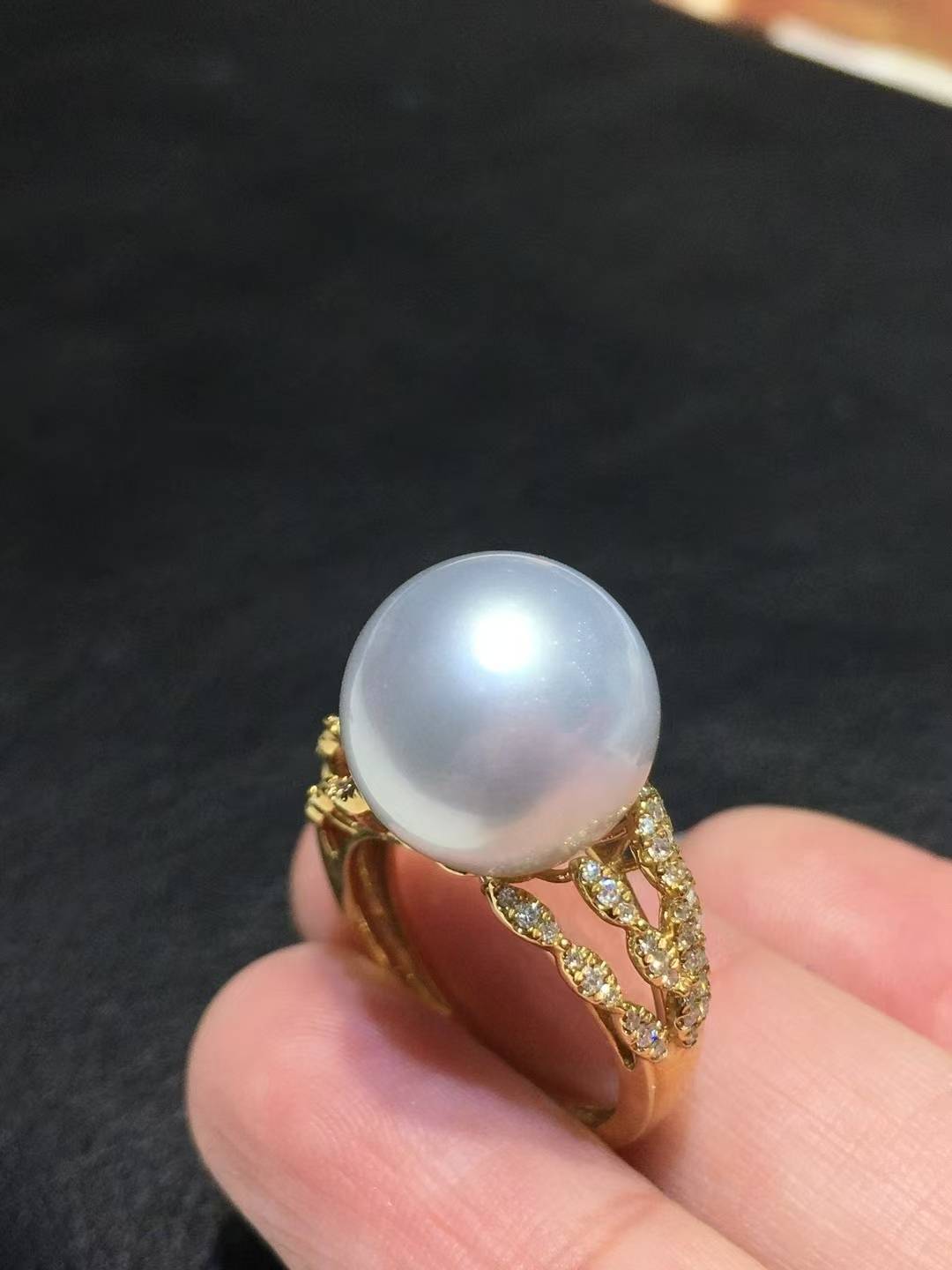 钻石澳白戒,这个戒臂设计上手效果太棒啦!18k厚金钻石,13-14mm冷光澳白