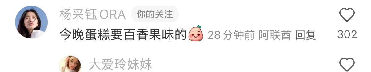 『杨采钰』在帖子下留言说“今晚蛋糕要百香果味的”。这样简单的口味偏好,透露着两人日常生活中的小默契。