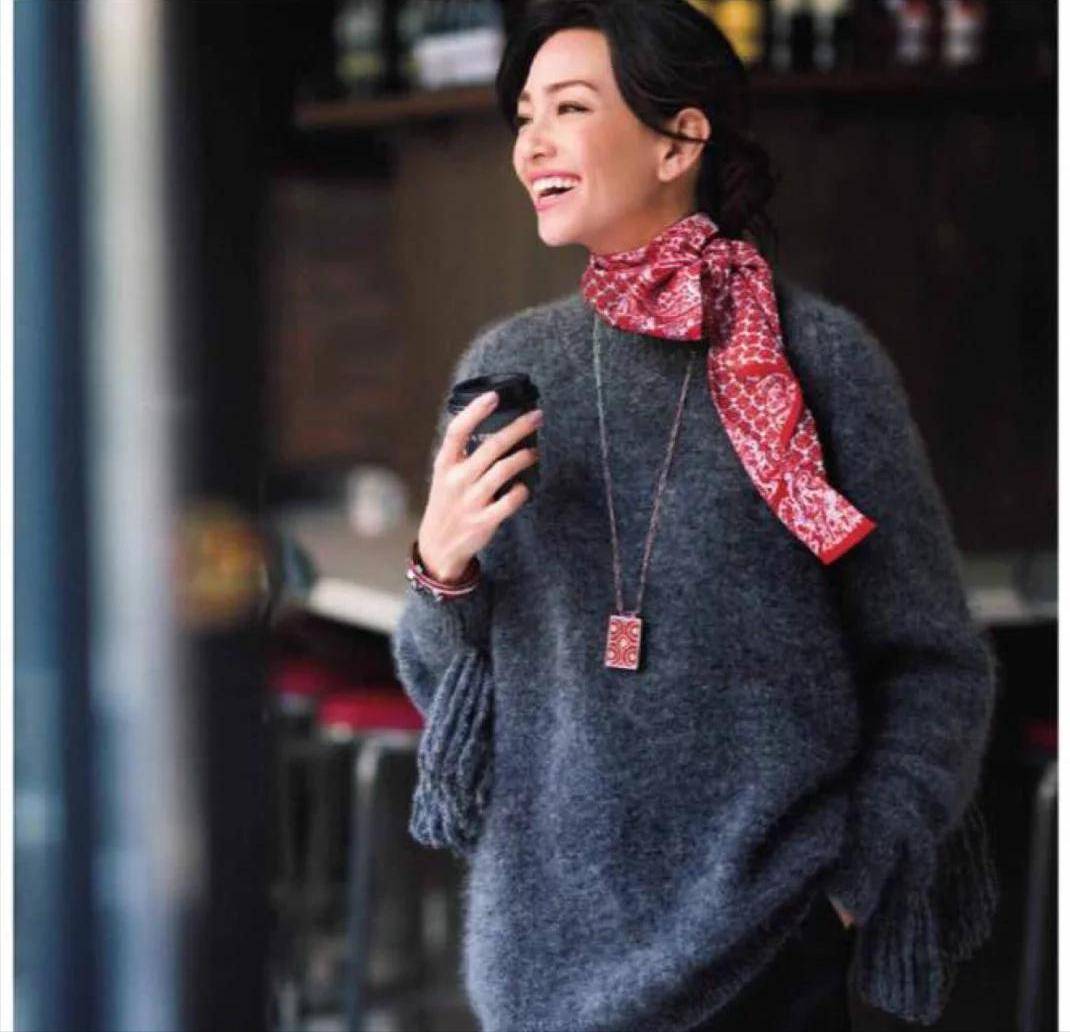 对于毛衣与裙装的搭配来说,增添一抹明亮的色彩无疑是在美好的基础上更添美好,能够让整体着装显得更具精致的感觉。有一件深灰色的毛衣,运用一点红色进行点缀,在增加穿着时色彩的感觉的同时还能显得更加雅致。对于中年女性♀️来讲,着装较为简单,借助一些配饰去进行点缀,能够体现出更为丰富的意味。