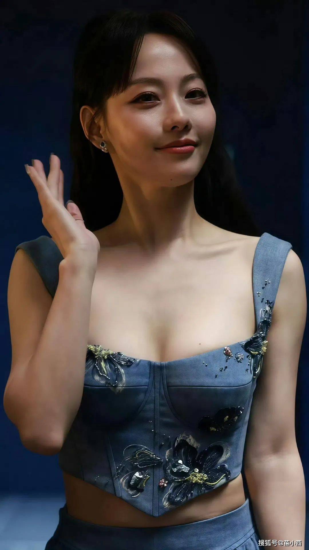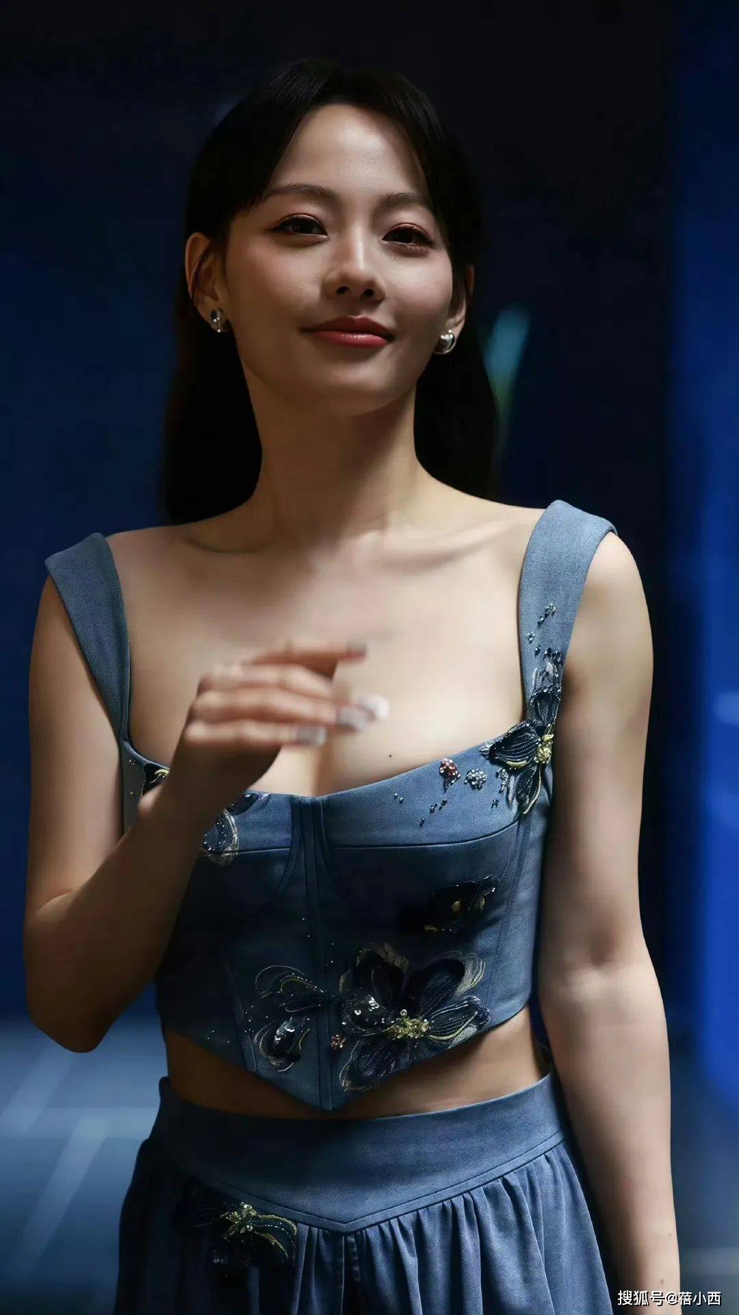 『张嘉倪』以一身蓝色牛仔吊带与牛仔半身裙的搭配亮相,巧妙地将性感与酷感结合,带来了满满的新鲜感。吊带上衣设计独特,紧贴身形,不仅展现出她纤细的肩膀和精致的锁骨,还营造出随性与自由的时尚感。宽肩带的设计不仅缓解了肩部压力,还使她的肩部线条更加流畅,平衡了上半身与下半身的比例,彰显了个性与自信。