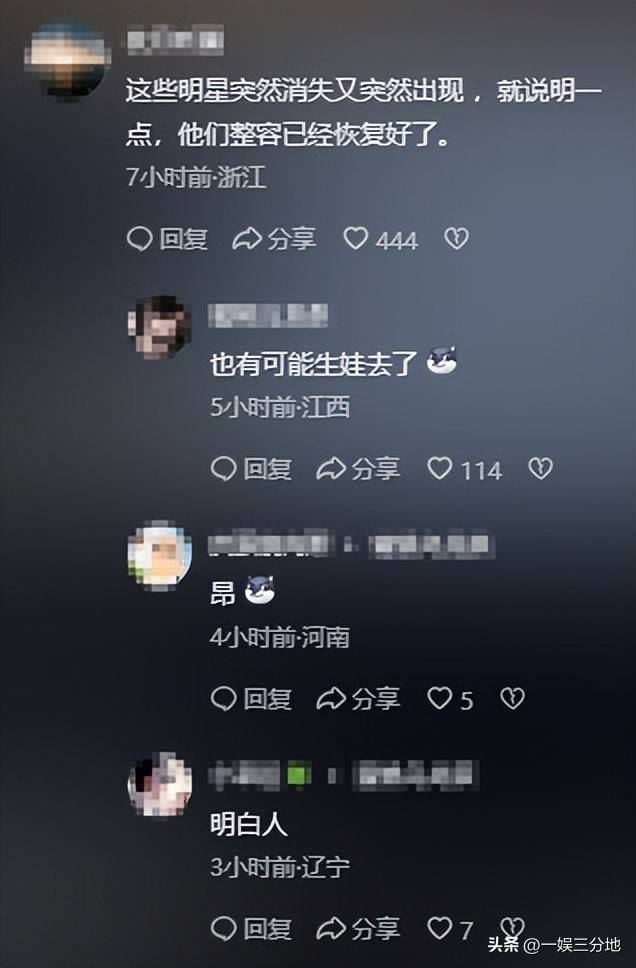 面对『江疏影』长时间未露面的状态,网友们在评论区展开了各种猜测。一种说法是她可能去整容了,如今恢复后才再次出现在活动中;另一种猜测是她可能在生孩子。考虑到『娱乐圈』️的竞争激烈,稍有空档就可能被新晋艺人顶替,这些猜测也有一定的合理性。不过,这些都只是外界推测,『江疏影』许久未出现的真实原因仍不得而知,但显然一定是涉及到她生活或事业中非常重要的事情。
