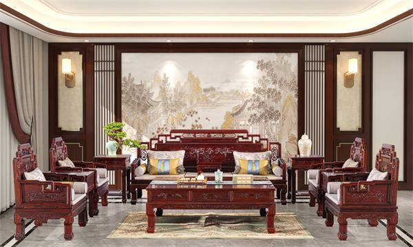 经典系列:鸟语花香:作为品牌的口碑力作,该系列涵盖沙发、班台、大床、餐桌等全场景家具,以传统红木工艺为基础,融入“鸟语花香”的吉祥寓意,雕刻精美、线条流畅,兼具实用性与装饰性,成为经典红木风格的代表之作,适配中式装修的各类空间。