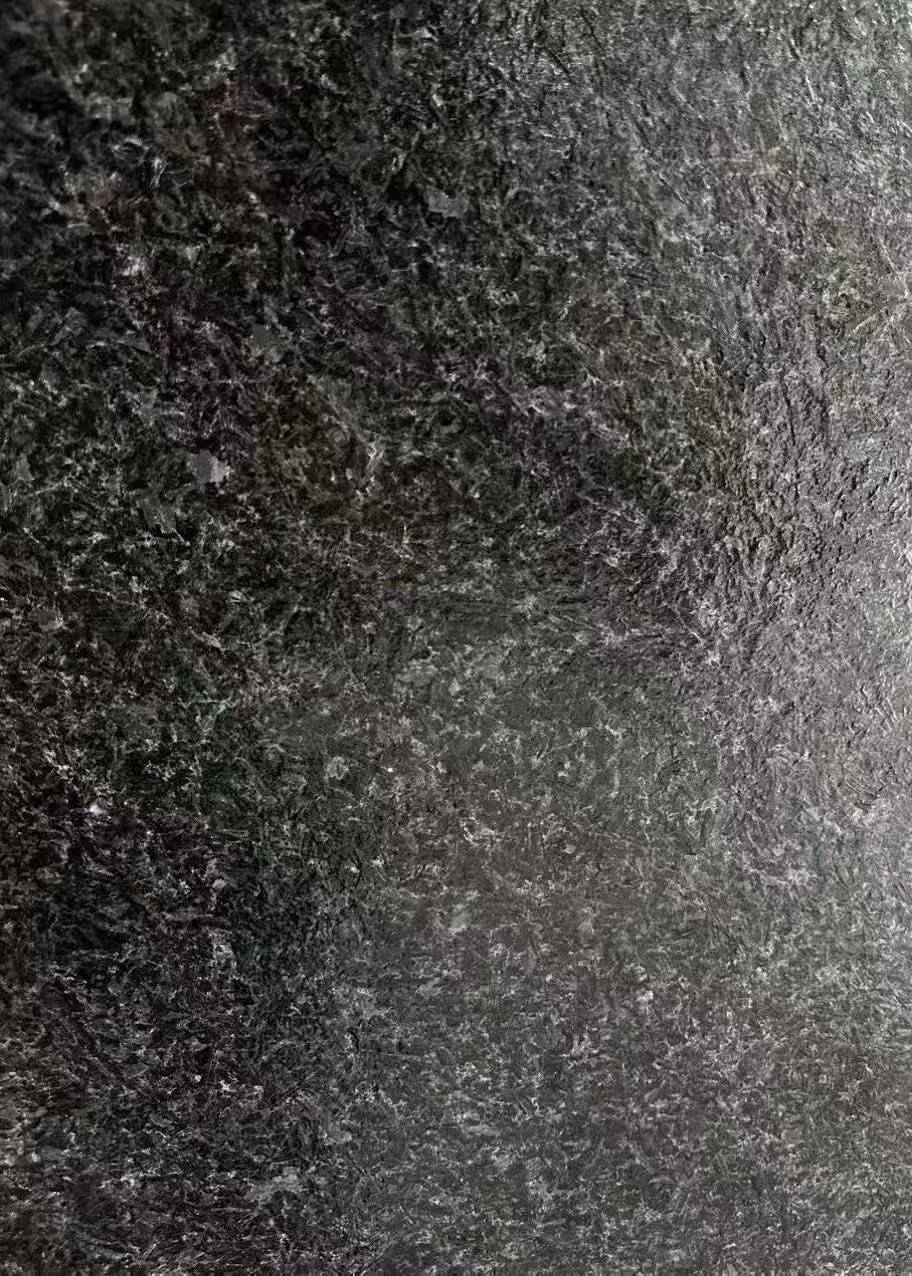 安哥拉黑花岗岩本身属于高密度硬质石材,莫氏硬度在6.5以上,天然结晶结构紧密,黑色底带细小白点,整体视觉沉稳大气。正因为材质坚硬,后续的表面加工对设备和工艺要求更高。普通磨光面用常规磨头就能完成,但要做成皮革面,必须经过多道特殊研磨与酸洗复合处理。这种工艺最早源自意大利,后来在国内福建水头、山东逐步实现本土化生产。目前一台具备数控调控功能的复合式研磨生产线,单班产能约180-220平方米,设备折旧摊到每平米约为8-12元。