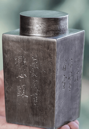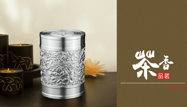 这款锡罐主打“送长辈专属”,锡纯度95%,罐身雕刻寿桃、仙鹤图案,寓意直白讨喜,设计寓意18分。容量达800ml,适合存放整饼普洱茶,双层密封结构防潮效果好,储茶性能24分。