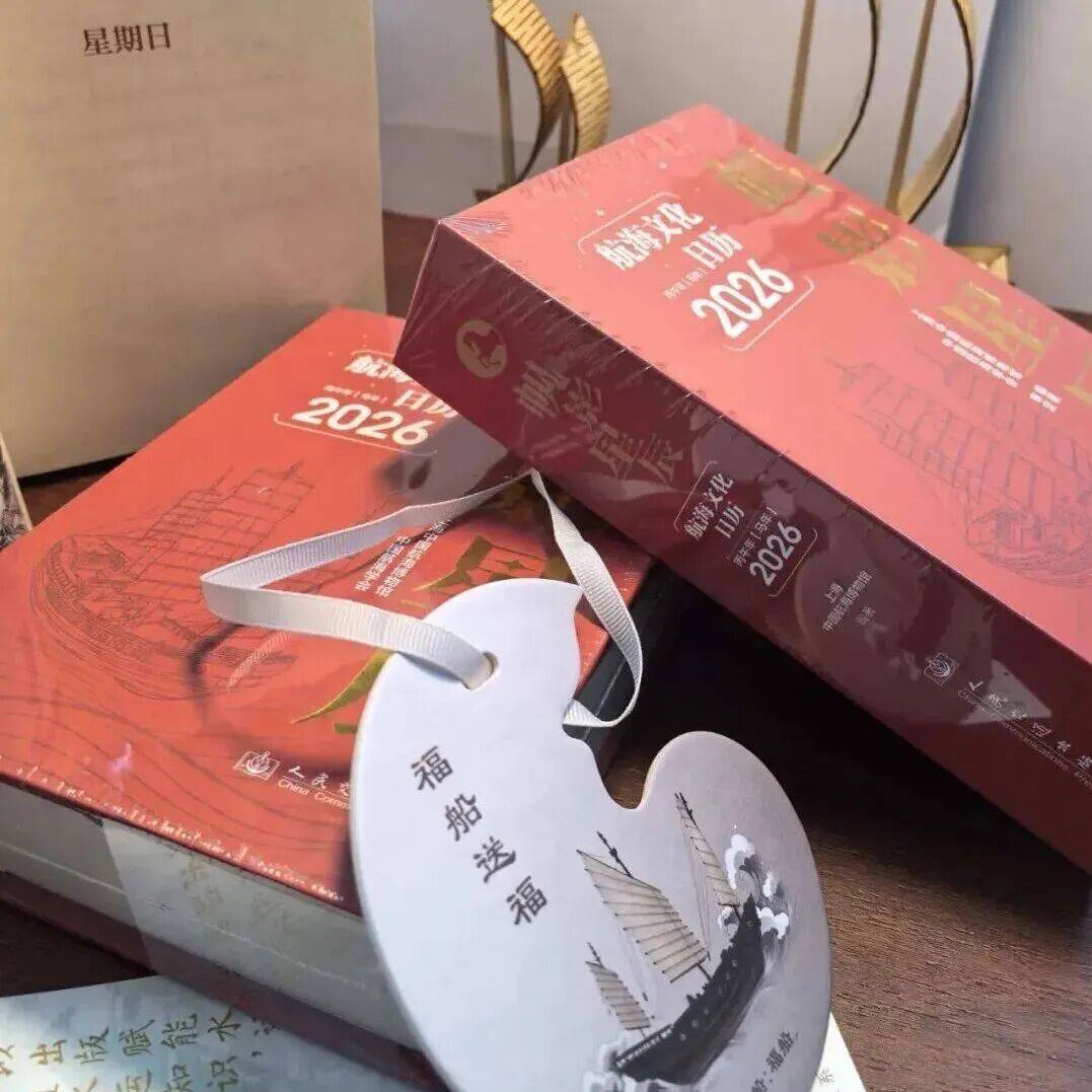 更值得一提的是,随日历附赠“福船送福” 御舻吉祥香片。香片一面印中国古代 “福船” 图案,寓意 “福船送福”;另一面是乾隆皇帝的御舻 “安福舻”,承载 “舻载安福来” 的美好祈愿。将其置于案头、夹于书间、挂于车内或是放进衣物柜,都能让暗香相伴,为生活增添一份航海专属的吉祥氛围。